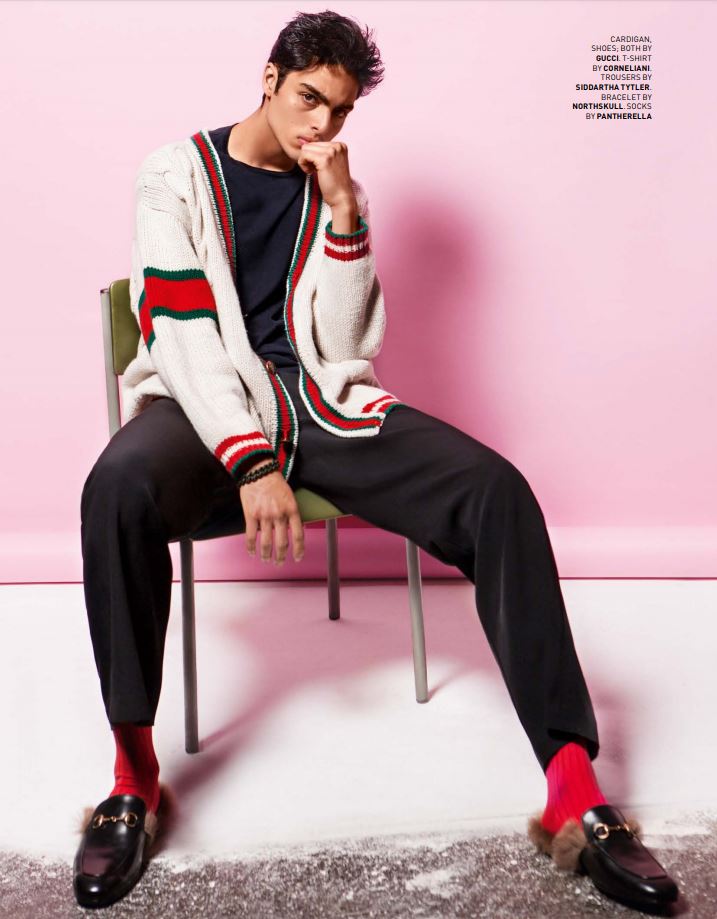 The Rubberised Chain Bracelet and Green Jasper Inlay Necklace featured in a men's fashion story in the June issue of GQ india photographed by Tibi Clenci and styled by Ravneet Channa.