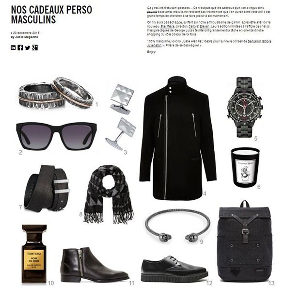 Juste Magazine, an online magazine that explores fashion and the arts, has featured the Faceted Twin Skull Bangle as part of a wish list consisting of masculine gifts for men. With the gift guide focusing on a dark theme, the Faceted Twin Skull Bangle in a gunmetal finish is the perfect Northskull creation to feature in this piece.