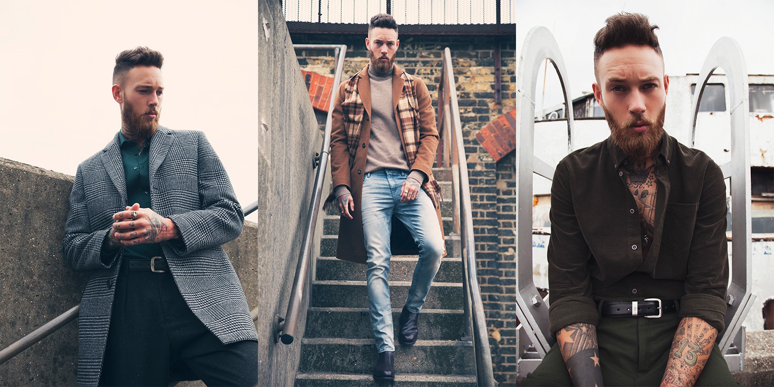 As part of a fashion editorial for Lewis Magazine, model Billy Huxley is styled by Symone Keisha in a number of contemporary outfits accessorised with Northskull jewellery. Shot by Claudio Harris in London, Billy wears smart/casual looks that are completed with a cool finishing touch by adding jewellery with a unique design for a fashion-forward flair. The In 'n' Out Ring is matched with a structured look, the gold Fence Ring and In 'n' Out Ring is styled with a casual winter outfit, and the Mantz Necklace is worn with dark green trousers and a black shirt to add individual style to the overall ensemble. The Fence Ring in Aged Silver is also styled with a roll neck jumper to add a dose of visual interest to the look.
