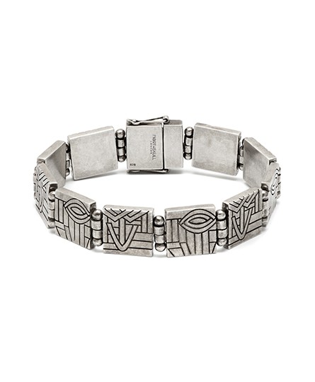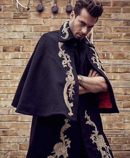Model Gonçalo Teixeira wears the Woto Tag Necklace and Kitoko Piercing Chain Bracelet in a couple of looks for a menswear story in L'Officiel Hommes Ukraine photographed by Paz Stammler and styled by Steven Doan.