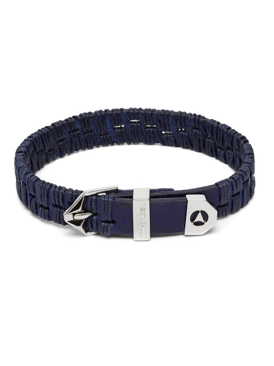 The Alawo Bracelet is a Northskull piece with aesthetic finesse. Crafted with the finest leather that is embellished with intricate embroidery hand stitched between the laser cut pattern along the leather, this Northskull accessory has an avant-garde edge.