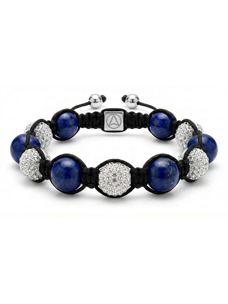 This combinatin of precision cut clear swarovski crystals & semi-precious Blue lapis stones make this a bracelet a classic. Great for casual & formal styling.