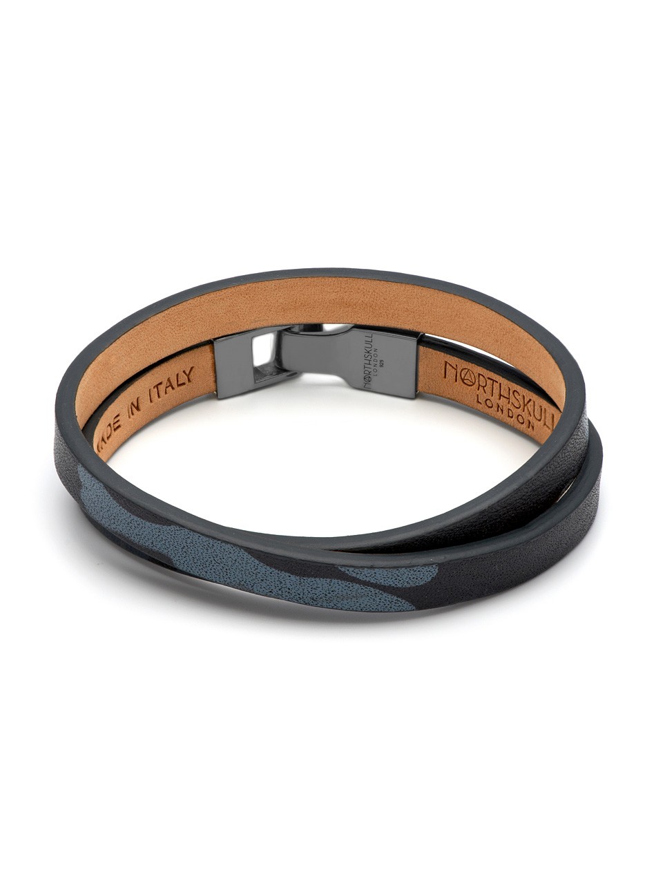 Incorporate a trendy print to casual dressing by accessorising with the Camouflage Double Wrap Bracelet. Subverting the classic green camouflage pattern with blue shades, this leather bracelet will enhance modern tailoring with a fashionable detail.