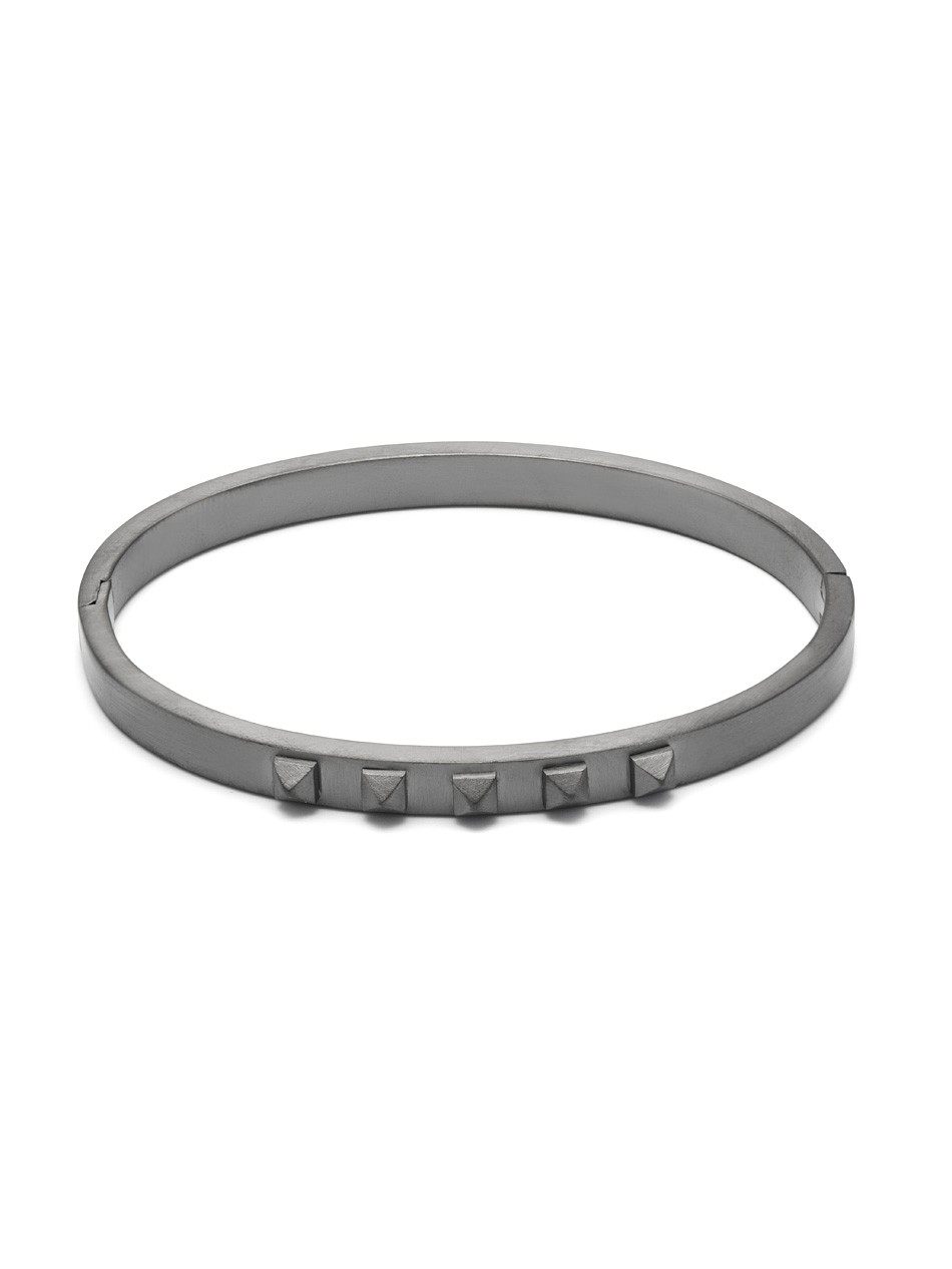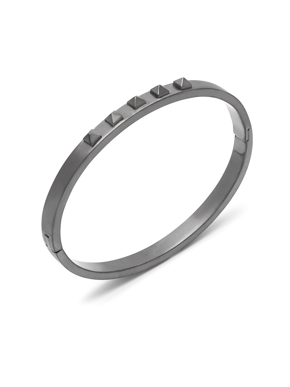 The Yazd Bangle is crafted to a high standard and is exceptionally embellished with five pyramid studs to decorate the piece with a stylish feature. Wear with casual tailoring for an instant outfit update.