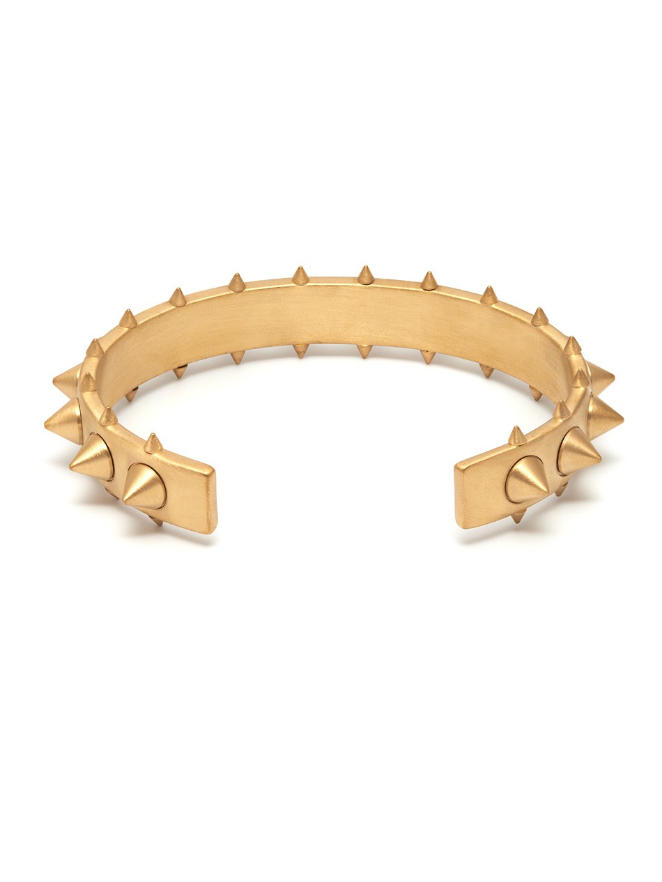 Make a daring statement by coordinating an outfit with the Egun Cuff. Crafted with conical spikes along the cuff as the bold feature of this forward-thinking design, this Northskull creation will have maximum impact on your style.