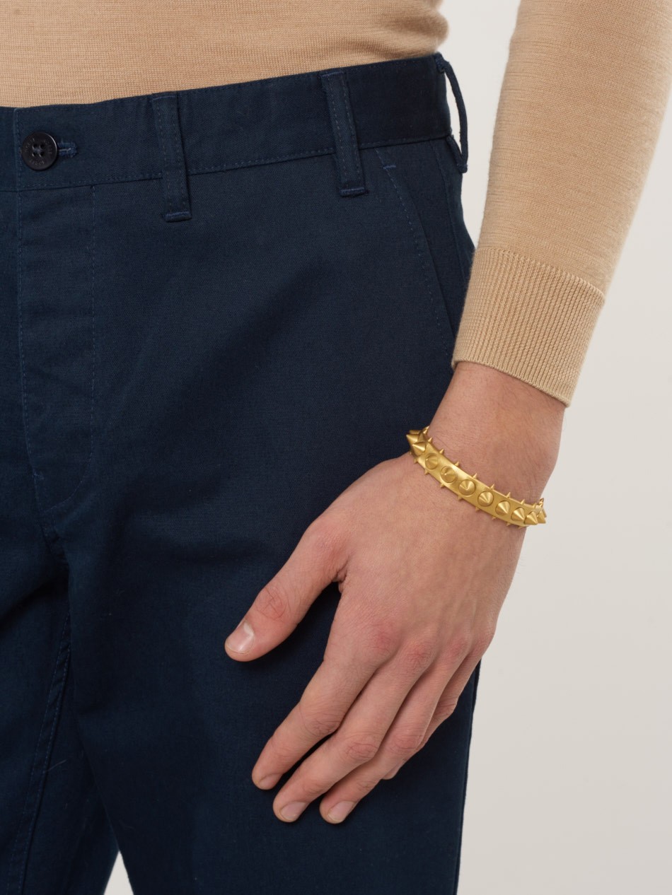 - Surface covered with hand soldered conical spikes and studs