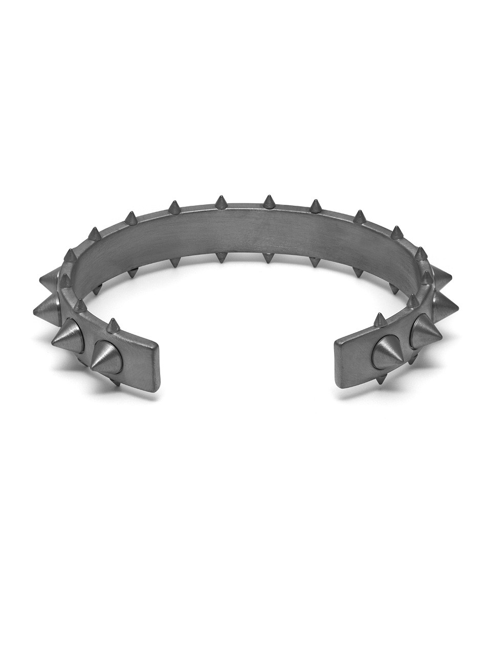 Using expert craftsmanship, the 48 spikes of the Egun Cuff are soldered one by one by skilled Italian artisans to bring a refined finished to this statement piece. A remarkable design with immaculate construction, this Northskull cuff is guaranteed to inject a fashion-forward attitude into your outfit.