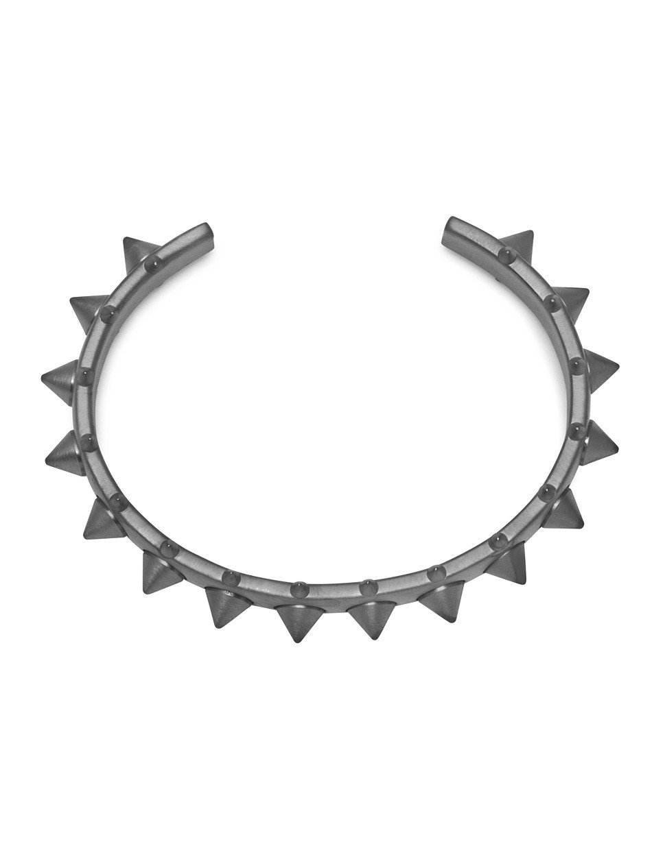 - Surface covered with hand soldered conical spikes and studs