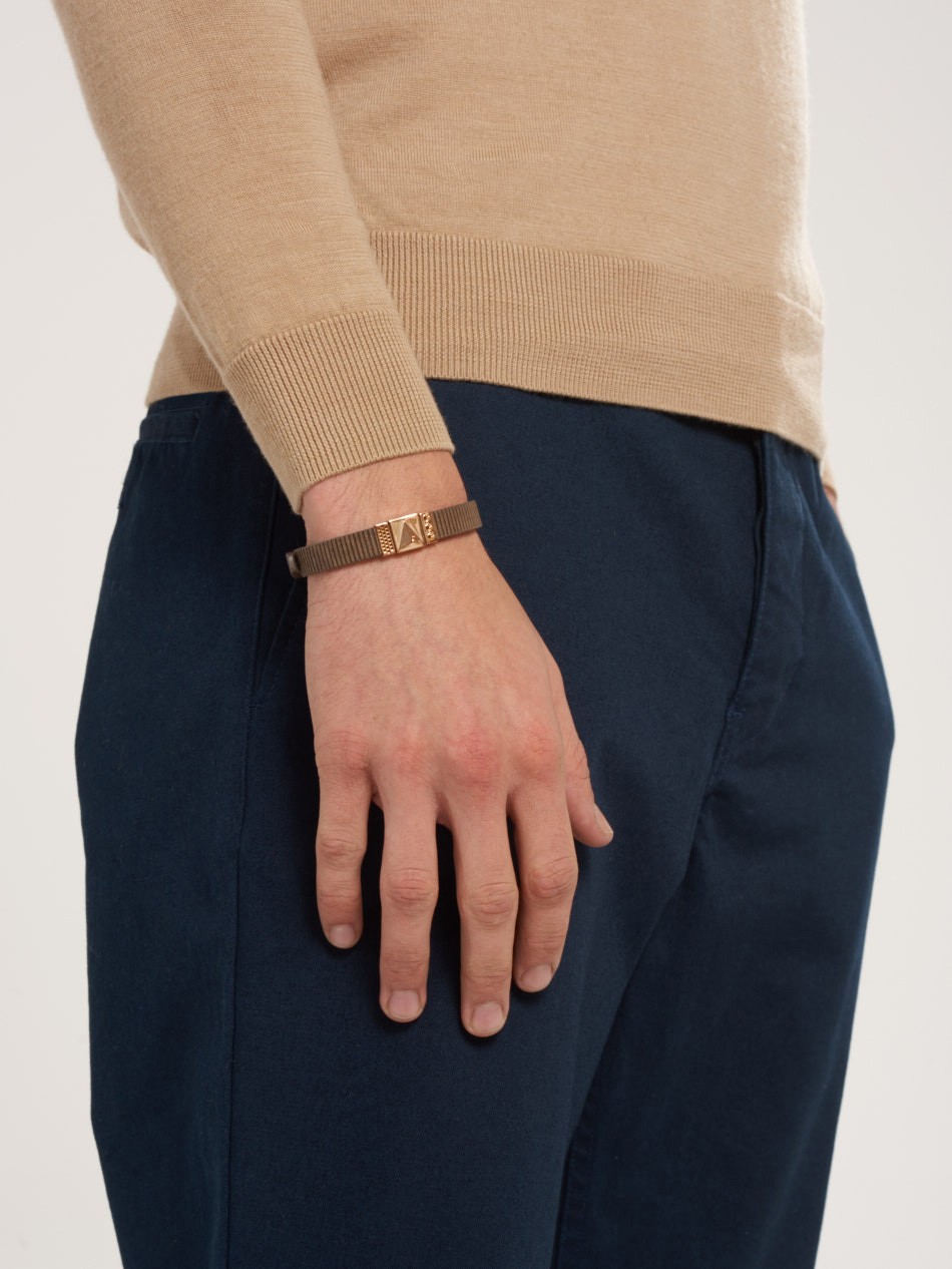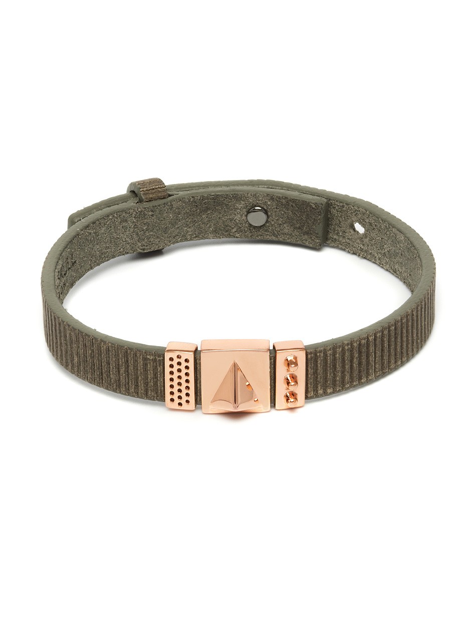 - Perforated, Logo and Spike elements in 18kt. Rose Gold plated Brass