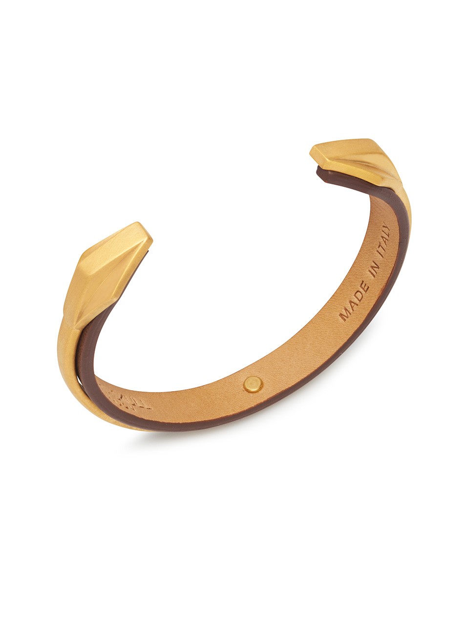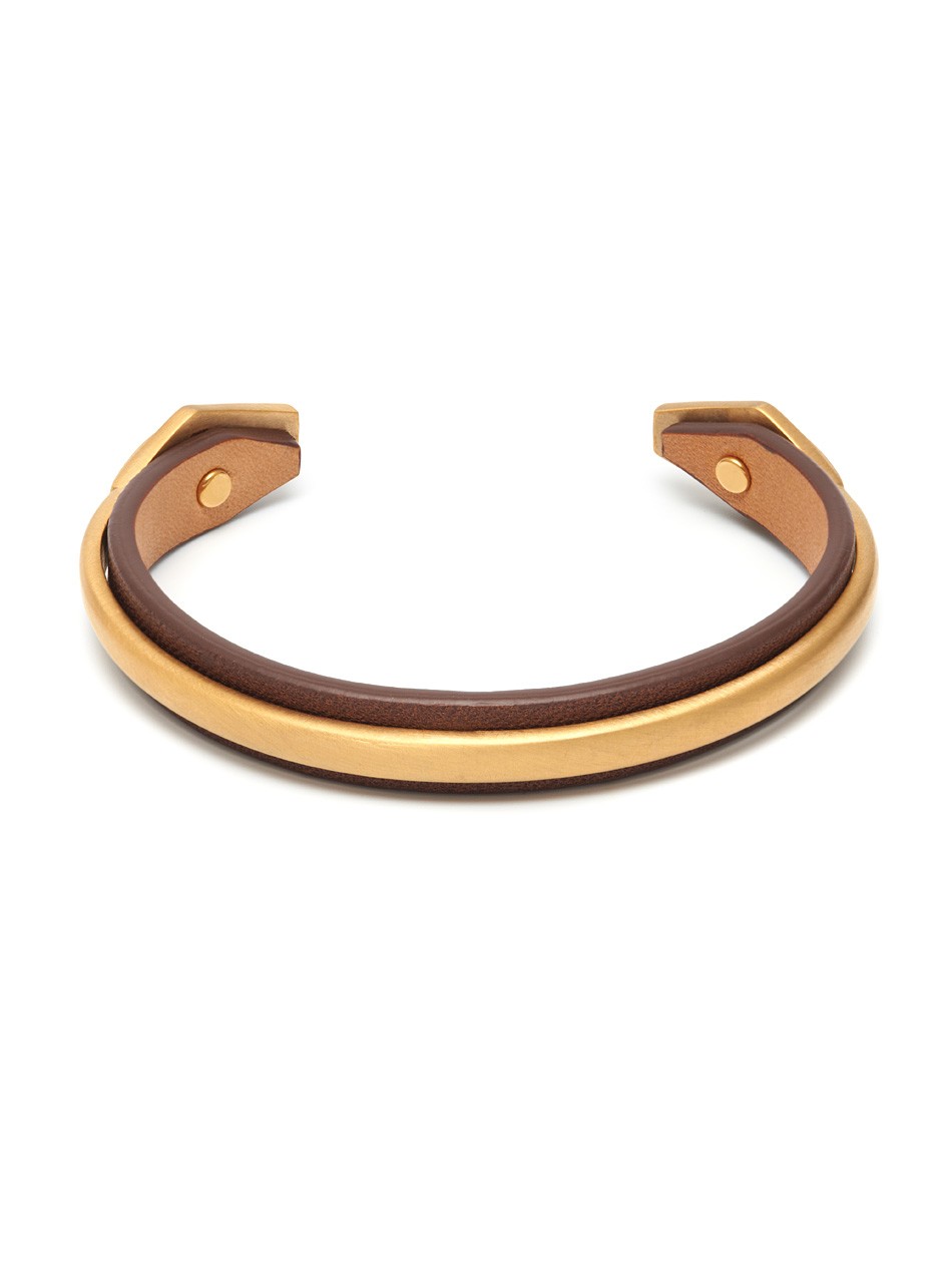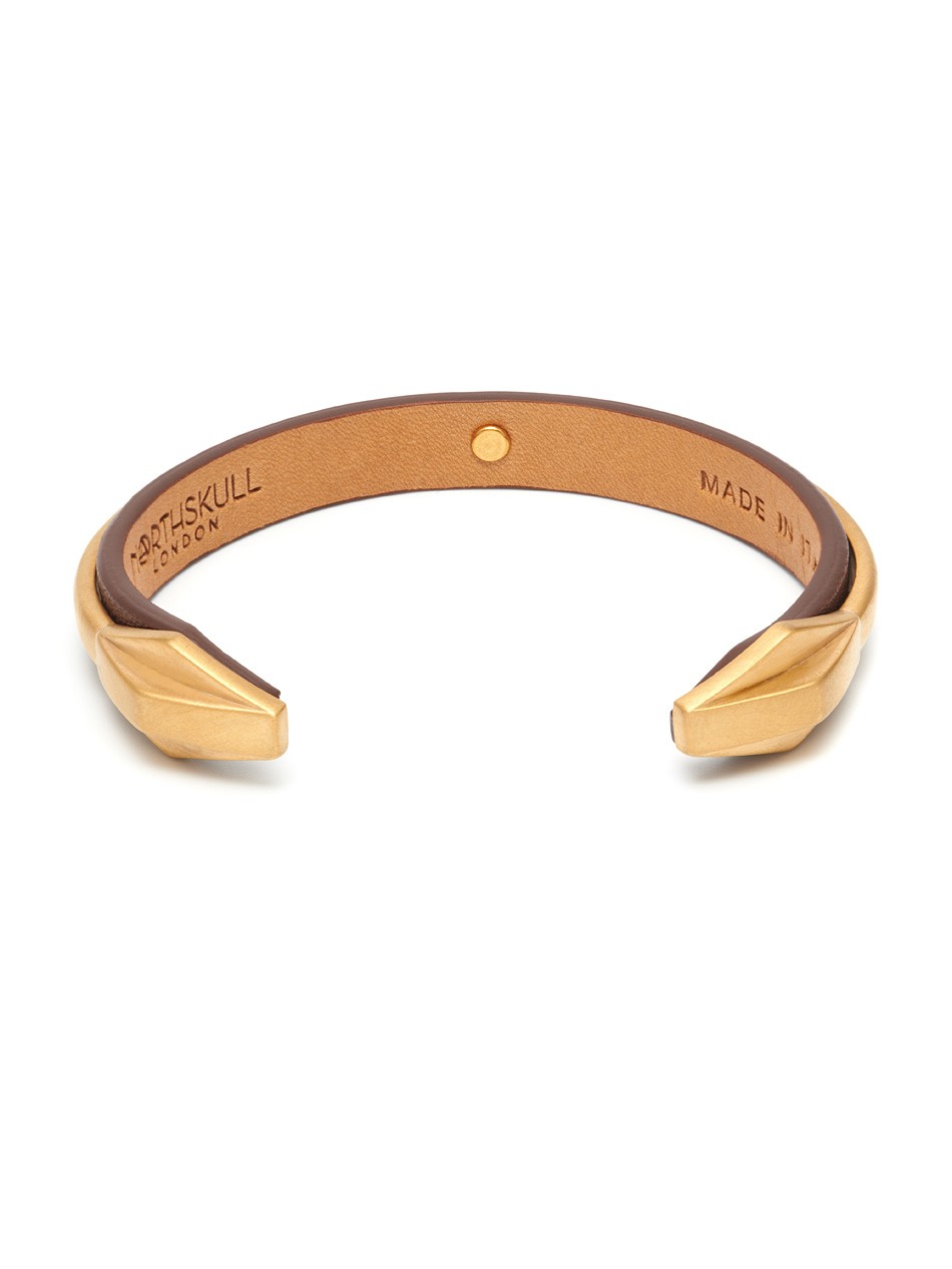 Hafez Leather Cuff in Brown and Brushed Gold