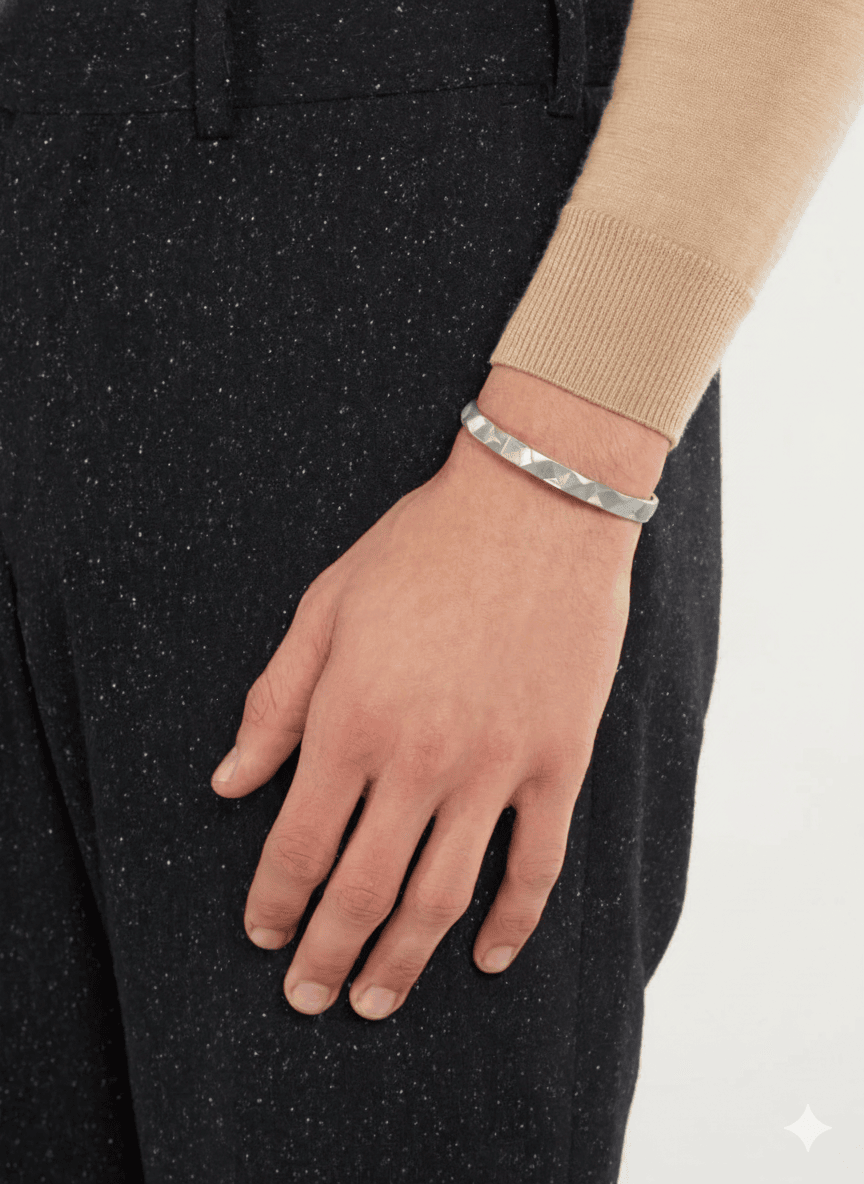 The In ‘n’ Out Cuff is a cuff with a modern aesthetic. Crafted with a considered approach to design, this Northskull piece encompasses a futuristic vision with technically innovative detailing. Pair with relaxed tailoring to add a stylish dimension to your look.