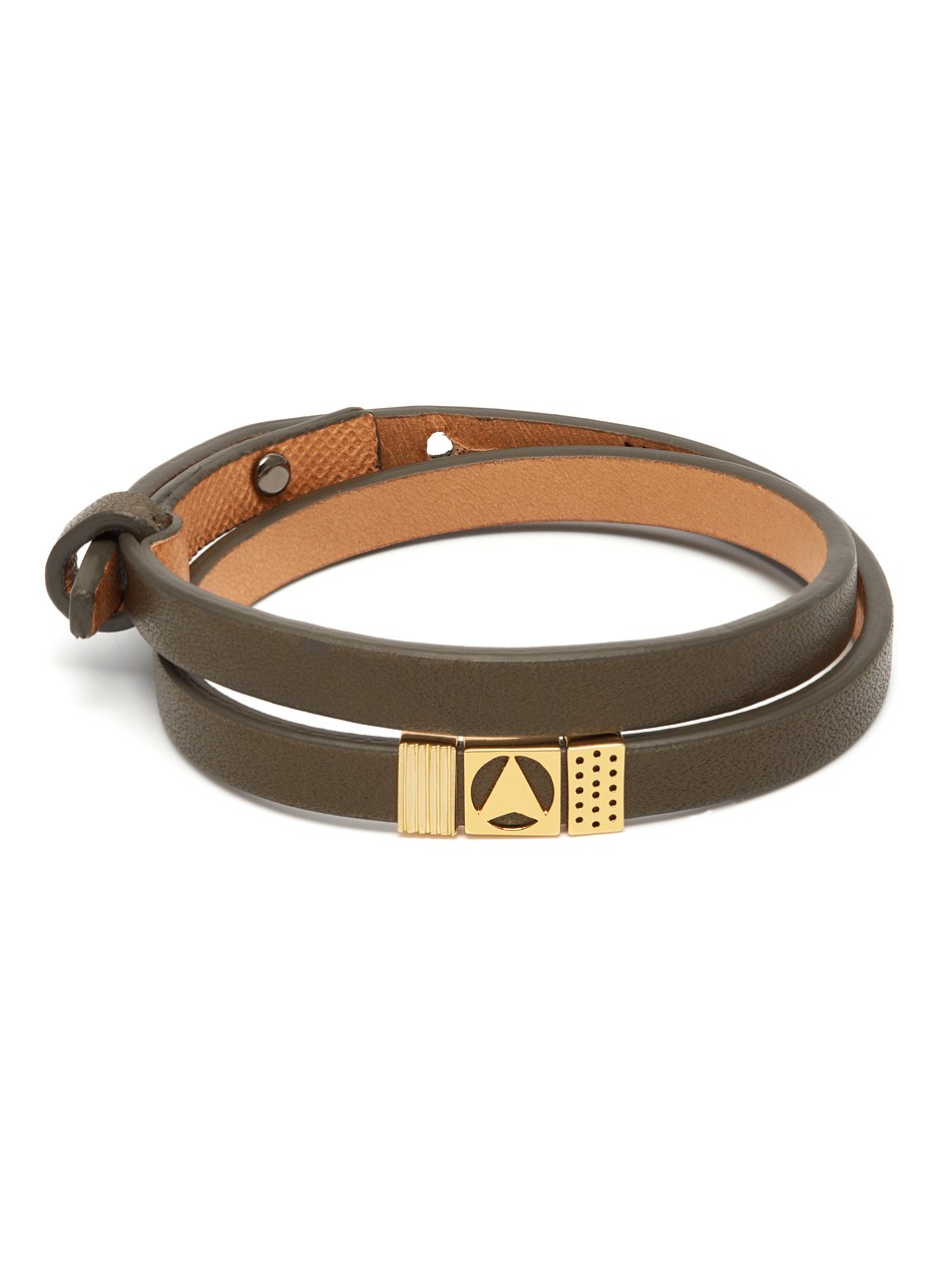 The aesthetic of the Insignia Double Wrap Bracelet captures the essence of the brand perfectly. With metallic elements that incorporate the signature arrow design along with the groove and perforated elements, this leather bracelet will elevate contemporary tailoring.