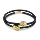 Black Nappa Leather / Gold Twin Skull Bracelet