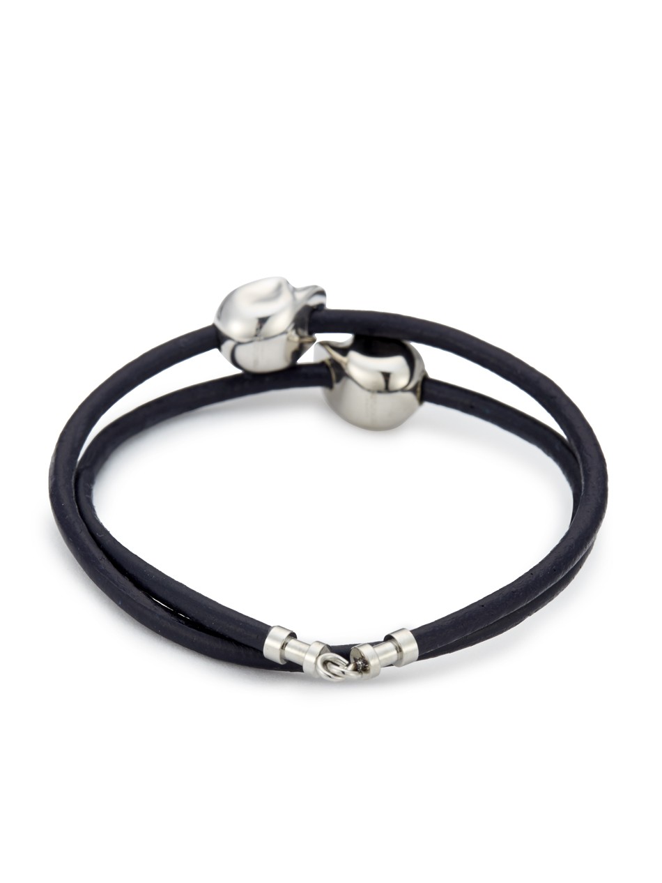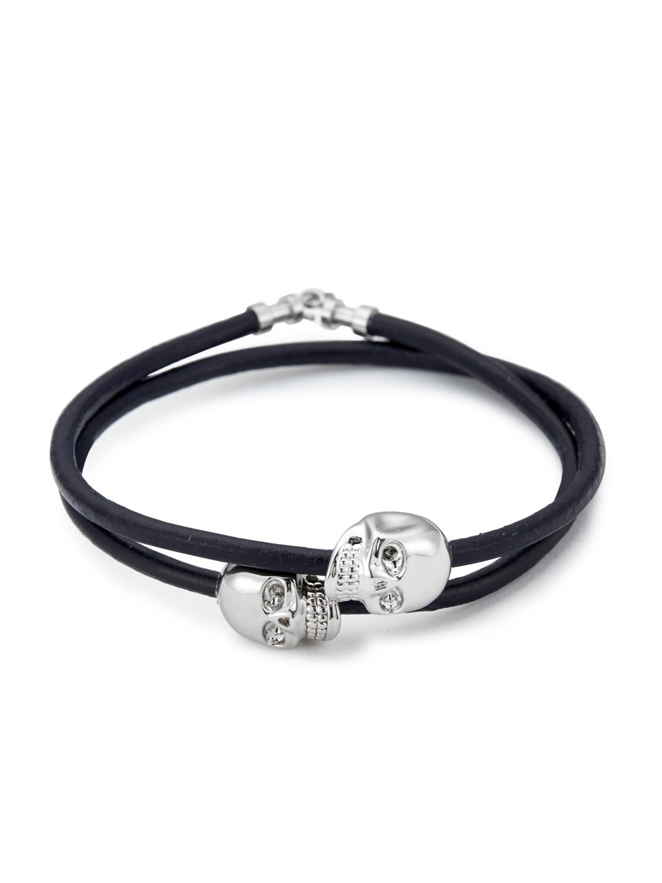 This sought after style is a fashion classic. Created with premium navy blue leather that wraps around the wrist twice, our signature skulls finished in 925. silver adds a luxe element to the piece, making it the perfect accessory to show a hint of style to any outfit.