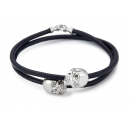 Black Nappa Leather / Silver Twin Skull Bracelet