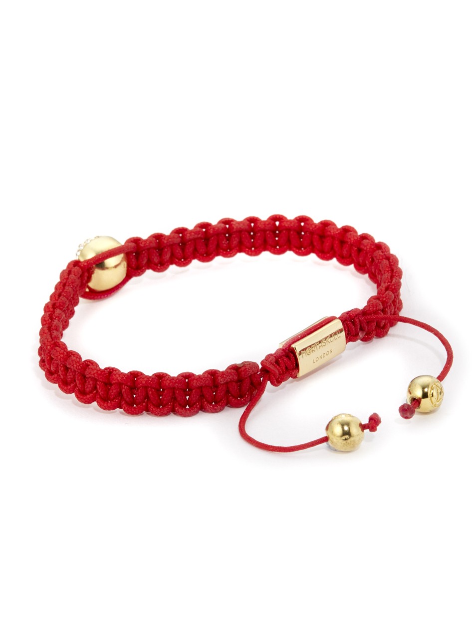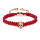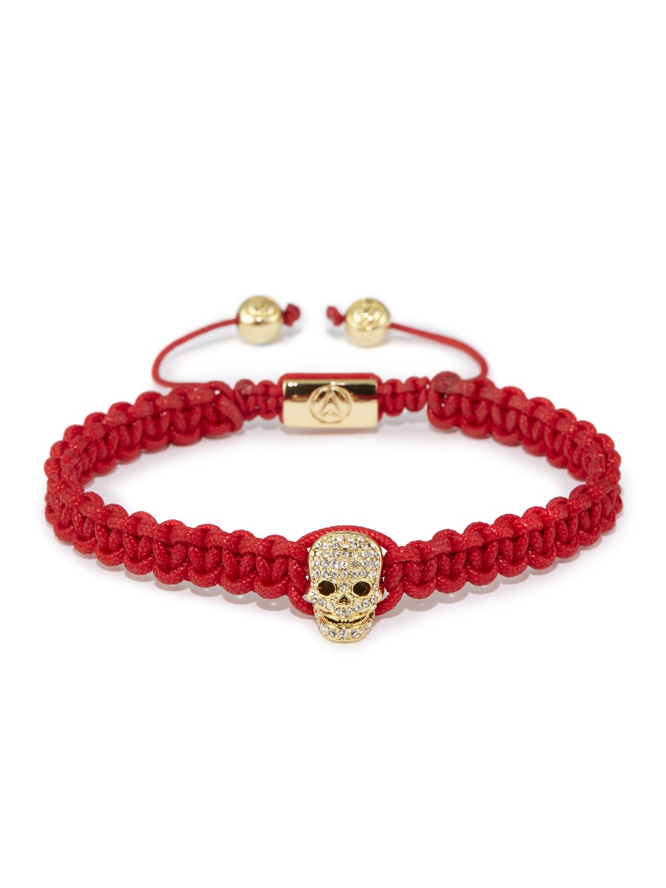 Red Macramé / Gold Skull & Clear Swarovski Bracelet