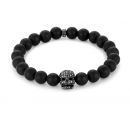 Matte Black Onyx / Gunmetal / Silver & Black Swarovski Skull Bracelet
