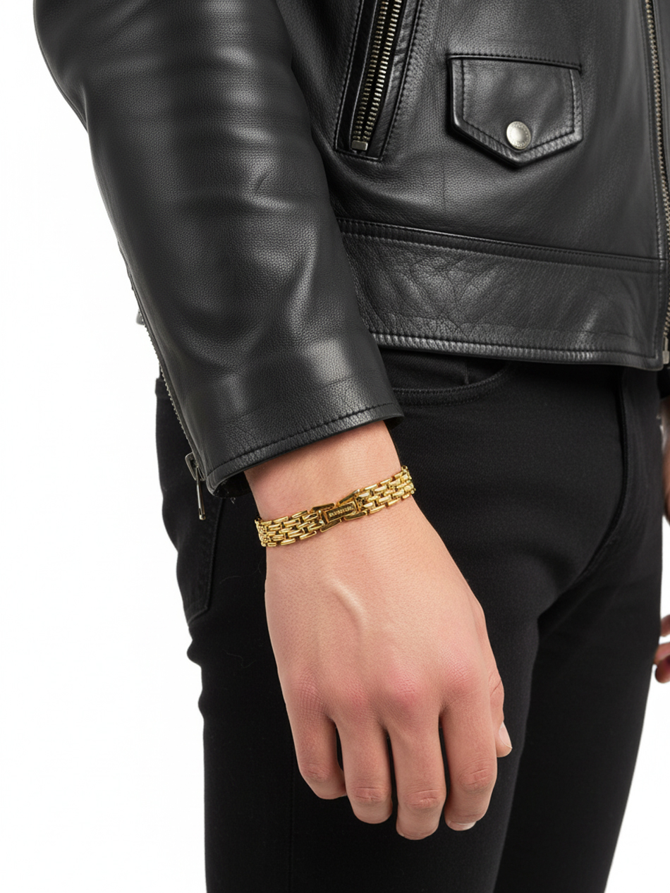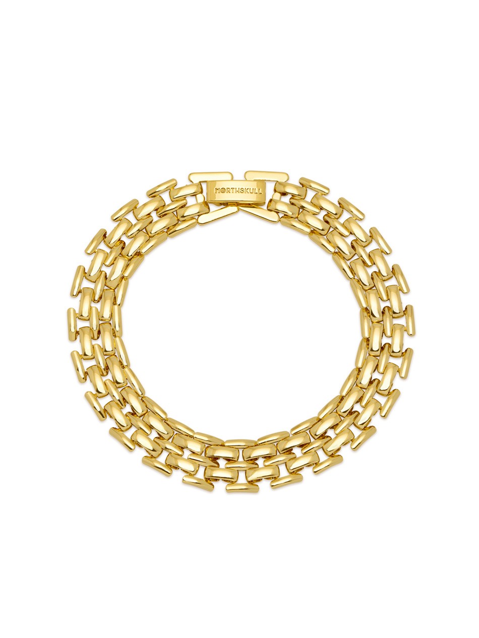 A new must have, this bracelets takes elements from the iconic designs of vintage watch chains and combines it with the modern twist of a Northskull design. This is an everyday piece which can be dressed up by adding simple chains, taking your outfit from day to night.