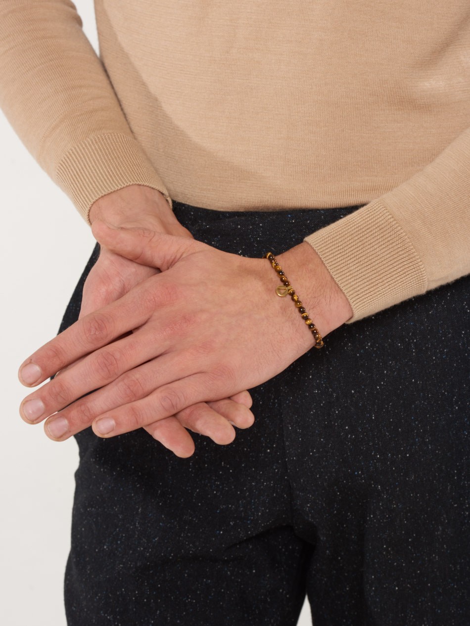Accentuate a casual look with this brilliant yellow tiger eye bracelet. The high-shine metallic arrow charm complements the warm tones of the natural stones, making this Northskull bracelet the ideal choice to complete minimal styles.