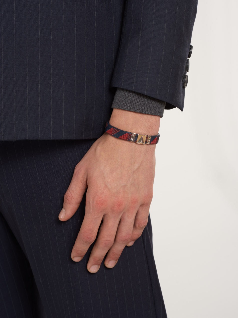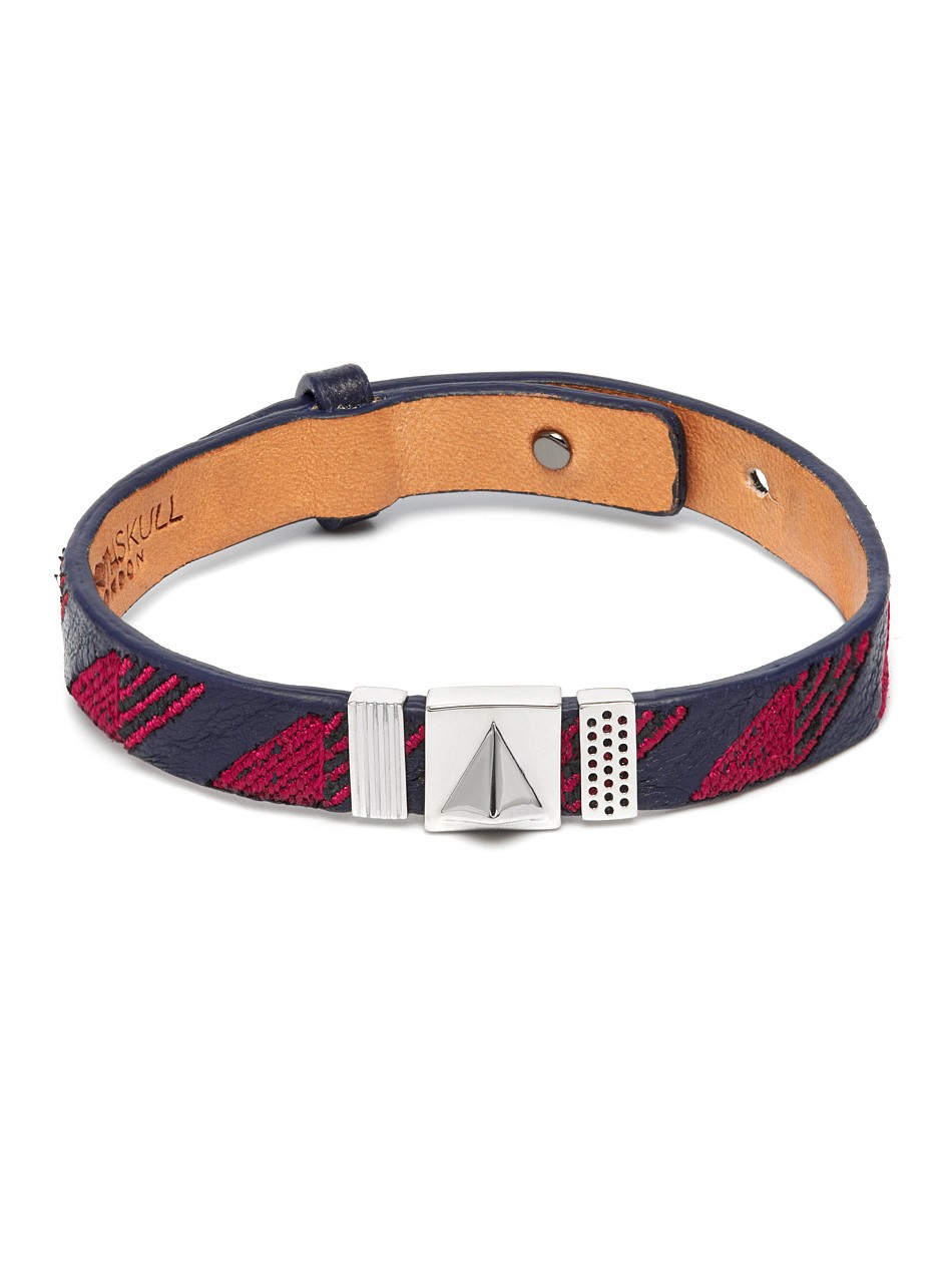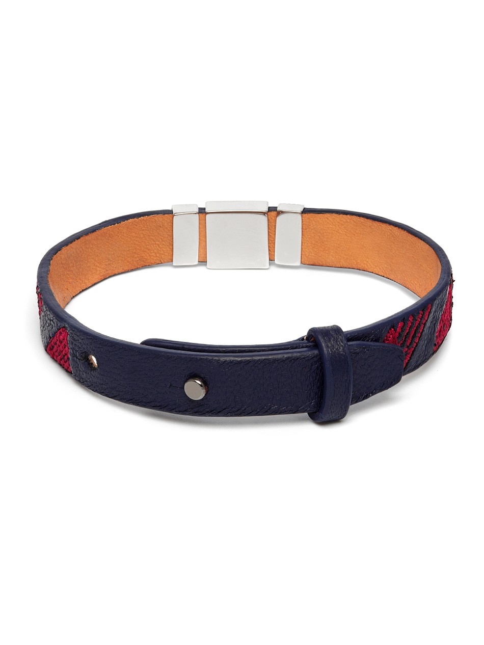 The Ojiji bracelet is defined by the delicate embroidery that is offset with premium leather decorated with exclusive metallic elements. Make an impact this season with this inventive and original design to express your personal style.