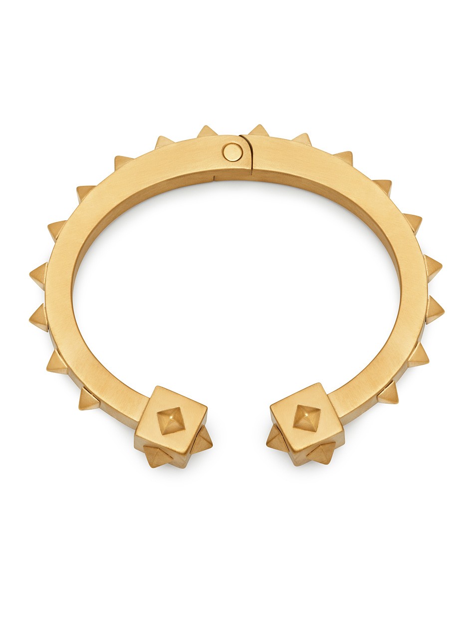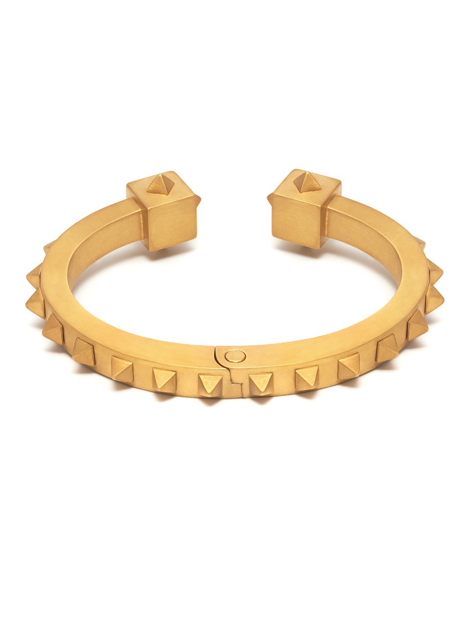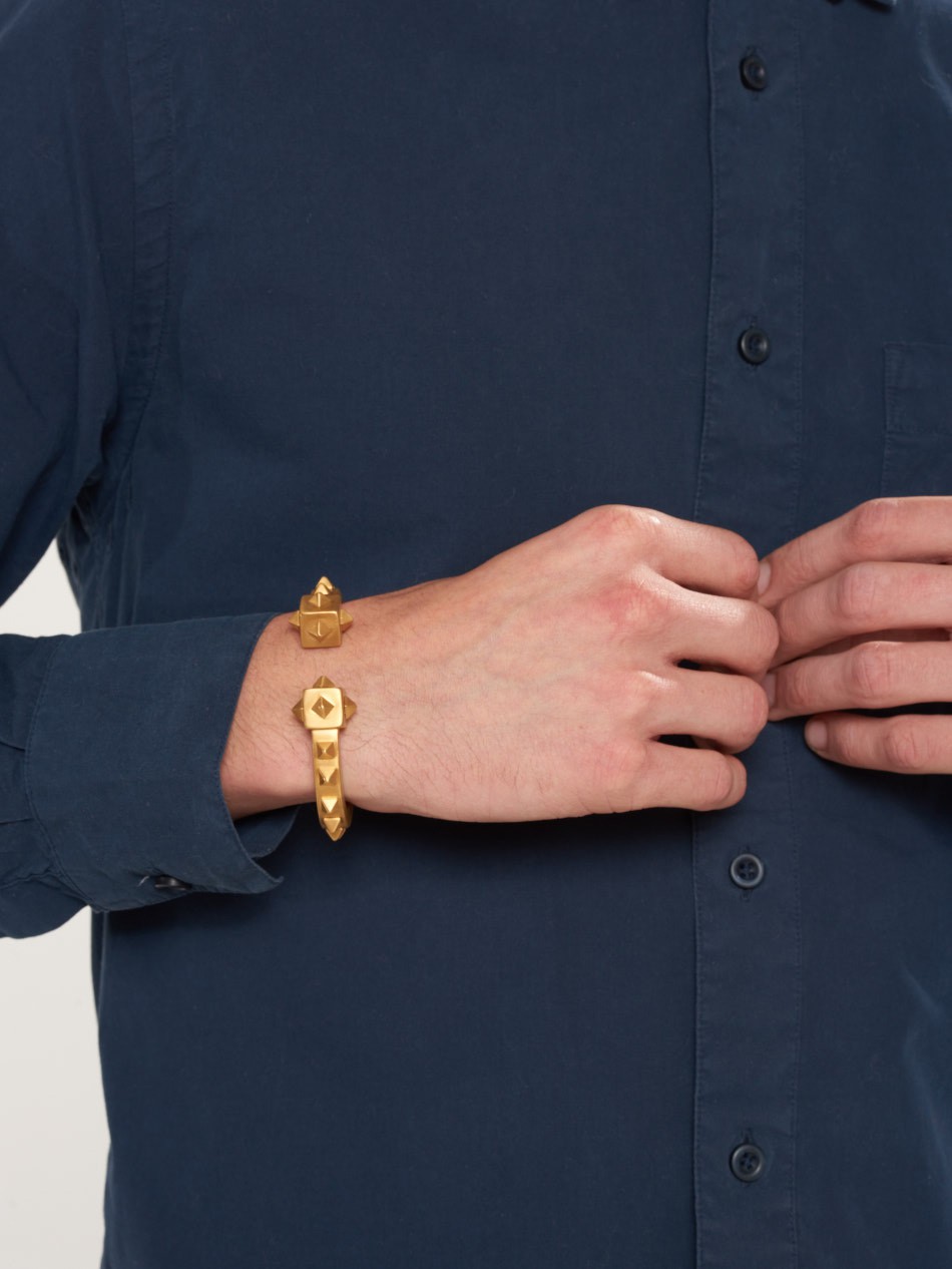 A truly unique design, the Oloye Cuff is defined by the pyramid studs that decorate the piece. The modern detailing of this Northskull creation has a masculine elegance that will elevate contemporary looks this season.