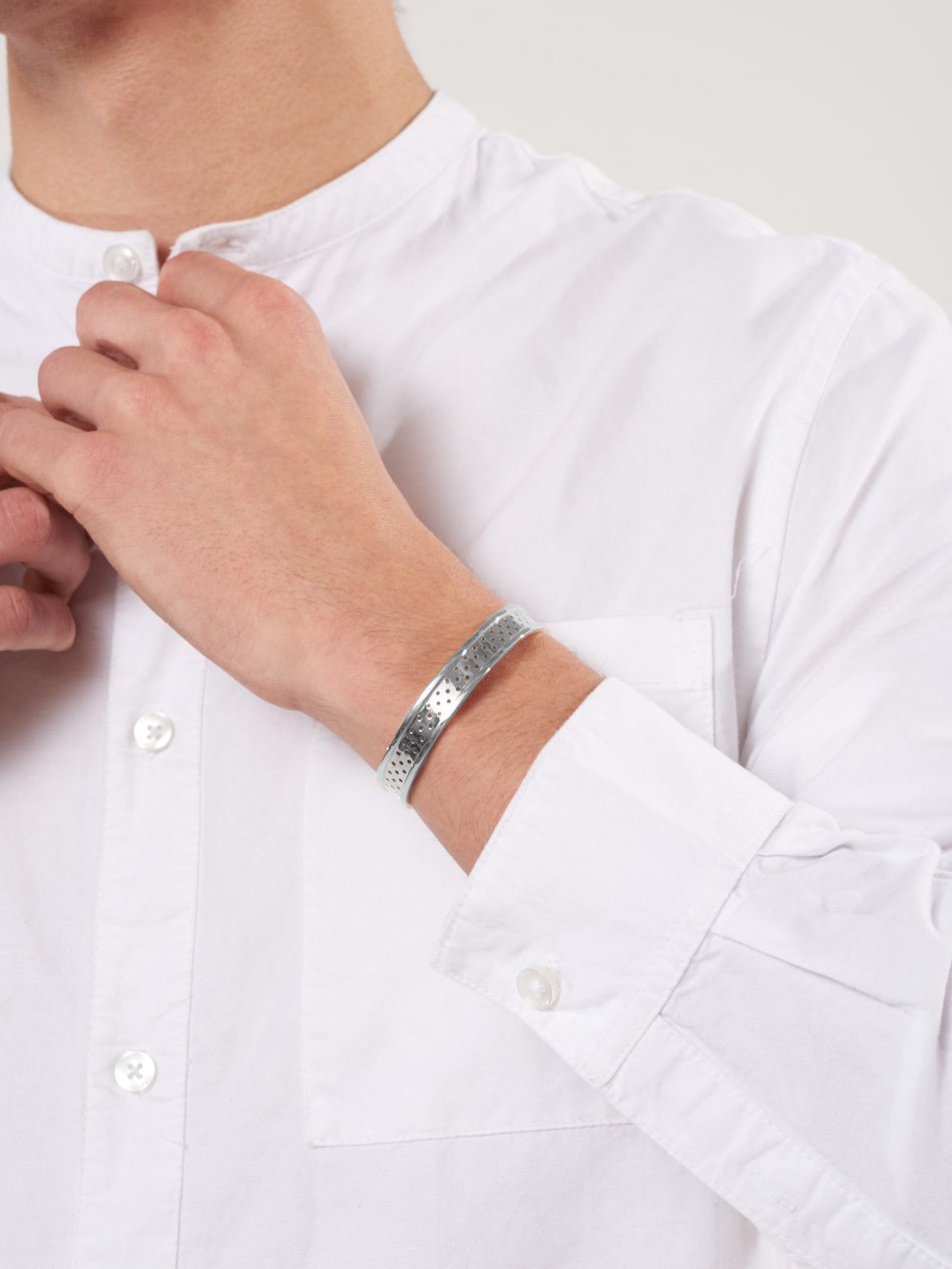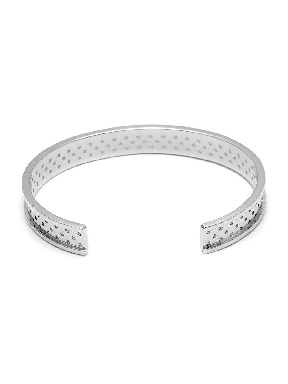 Strike the perfect balance between edgy and understated with this Perforated Cuff. The metallic detailing on this piece is simple but adds maximum impact to your style when adorned on the wrist.