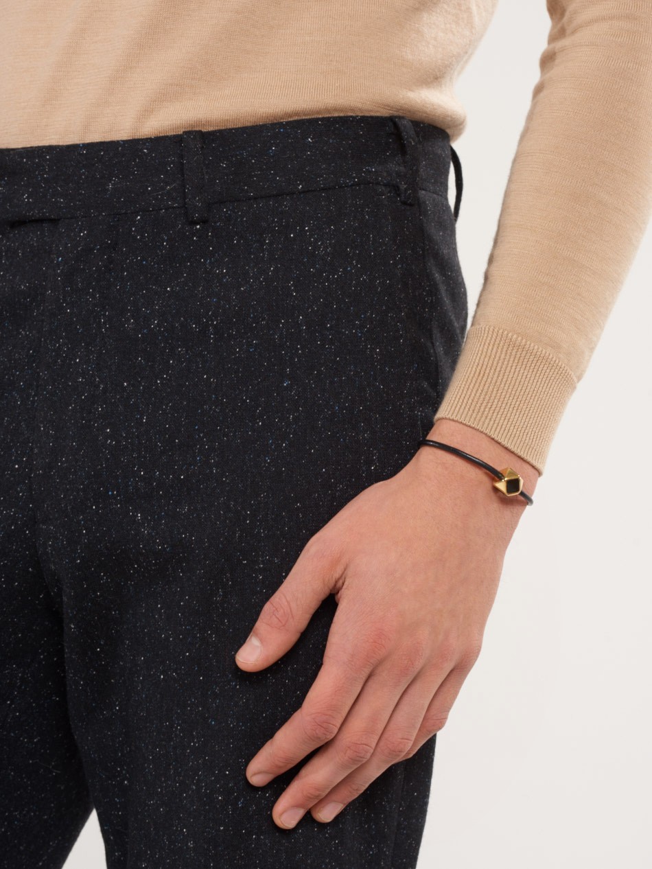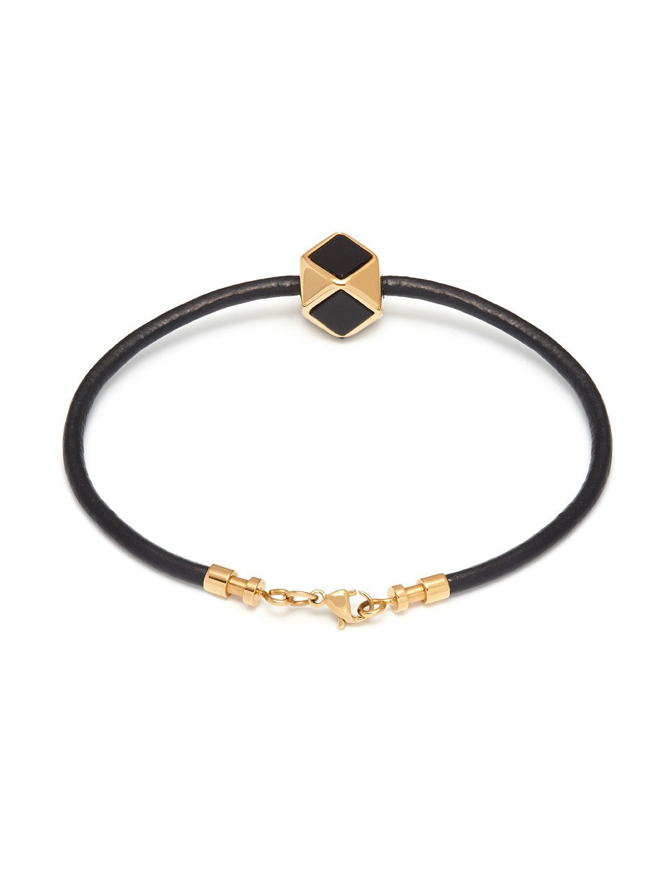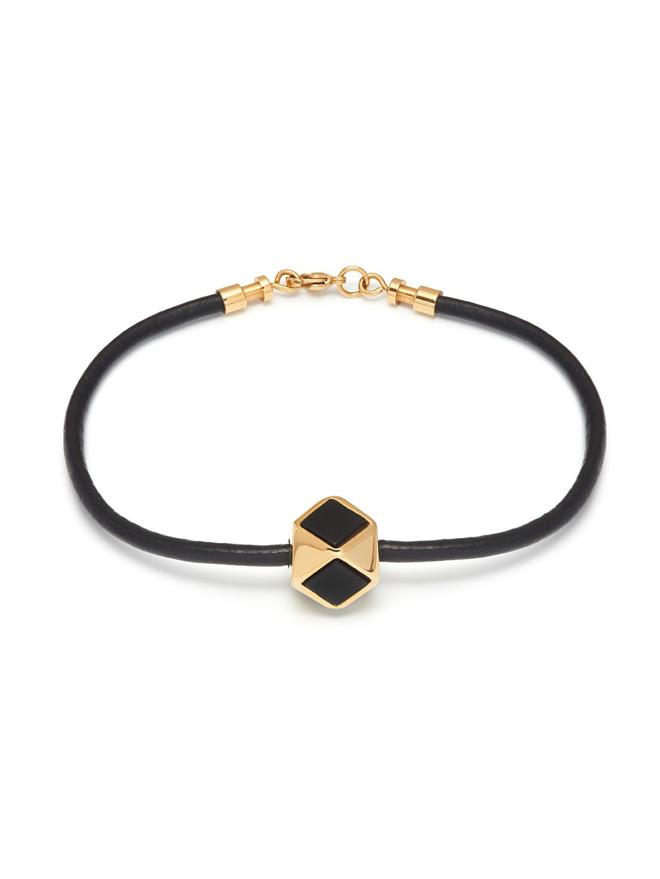 Taking the geometric trend to the next level, the polyhedron charm which incorporates black onyx panels is constructed with a black leather strap for a truly stylish effect. Revamp modern looks effortlessly with this leather bracelet for a cool “less is more” aesthetic.