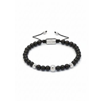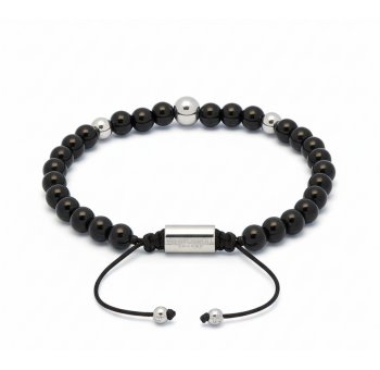 Black Onyx Arrow Bead Macrame Bracelet In Silver