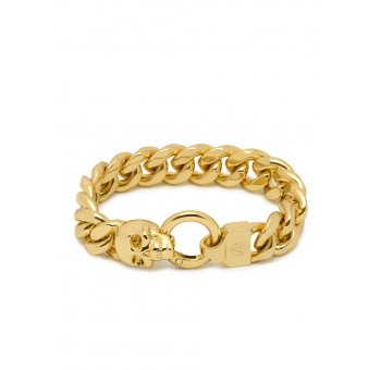 Atticus Skull Curb Chain Bracelet in Gold
