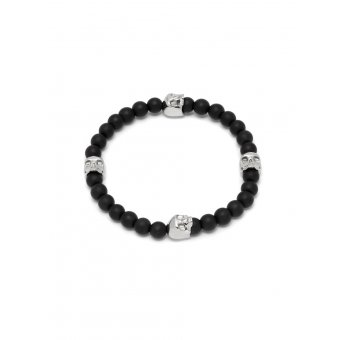 Black Onyx & Silver Quatro Skull Charm Bracelet