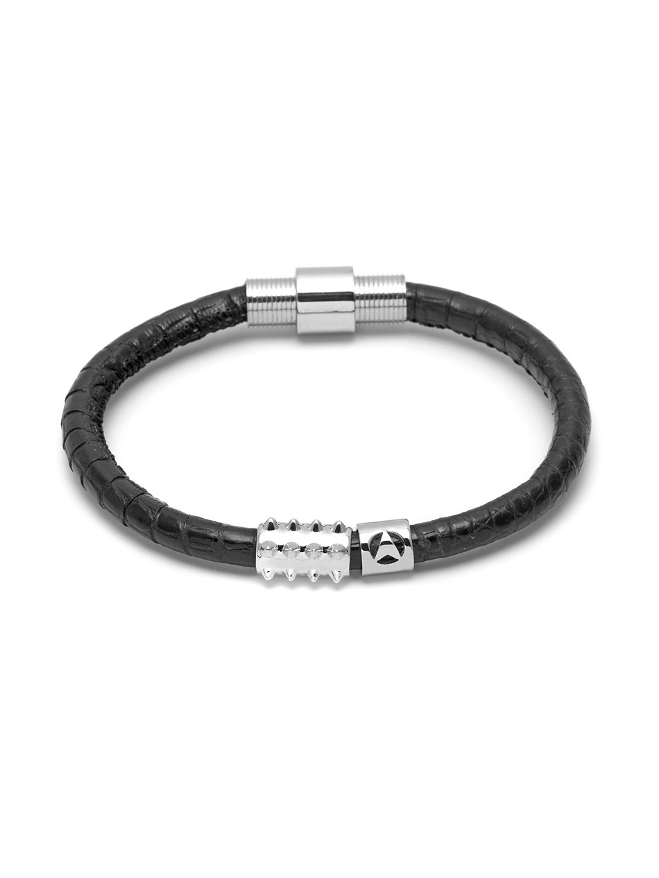 Spiked Phantom Lizard Leather Bracelet in Black and Silver