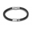 Black Nappa Leather / Silver Twin Skull Bracelet