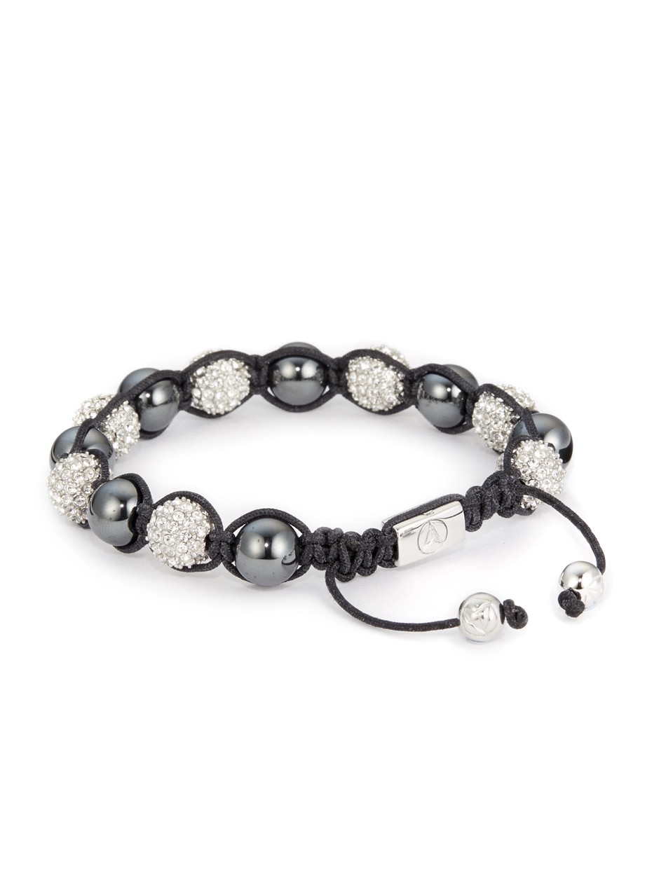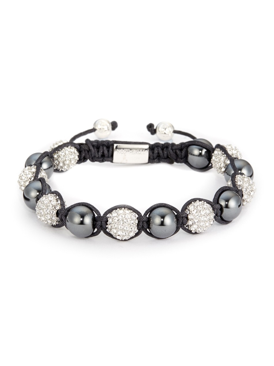 This bracelet comprising of hematite stones and Swarovski crystal encrusted beads is the perfect finishing touch to stylish outfits for a cool luxe aesthetic.