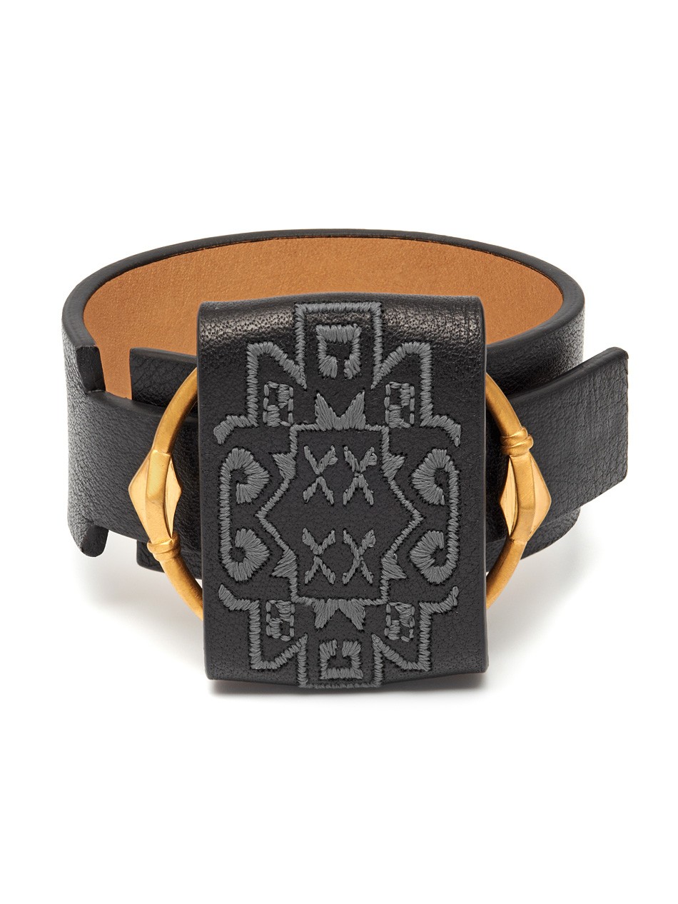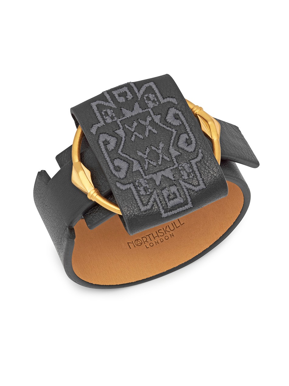 The Tabriz Leather Cuff is created with extraordinary craft details integrating premium leather with exquisite embroidery and luxe hardware. Drawing inspiration from patterns found on ornaments in Persia, this Northskull bracelet will define your individual style.