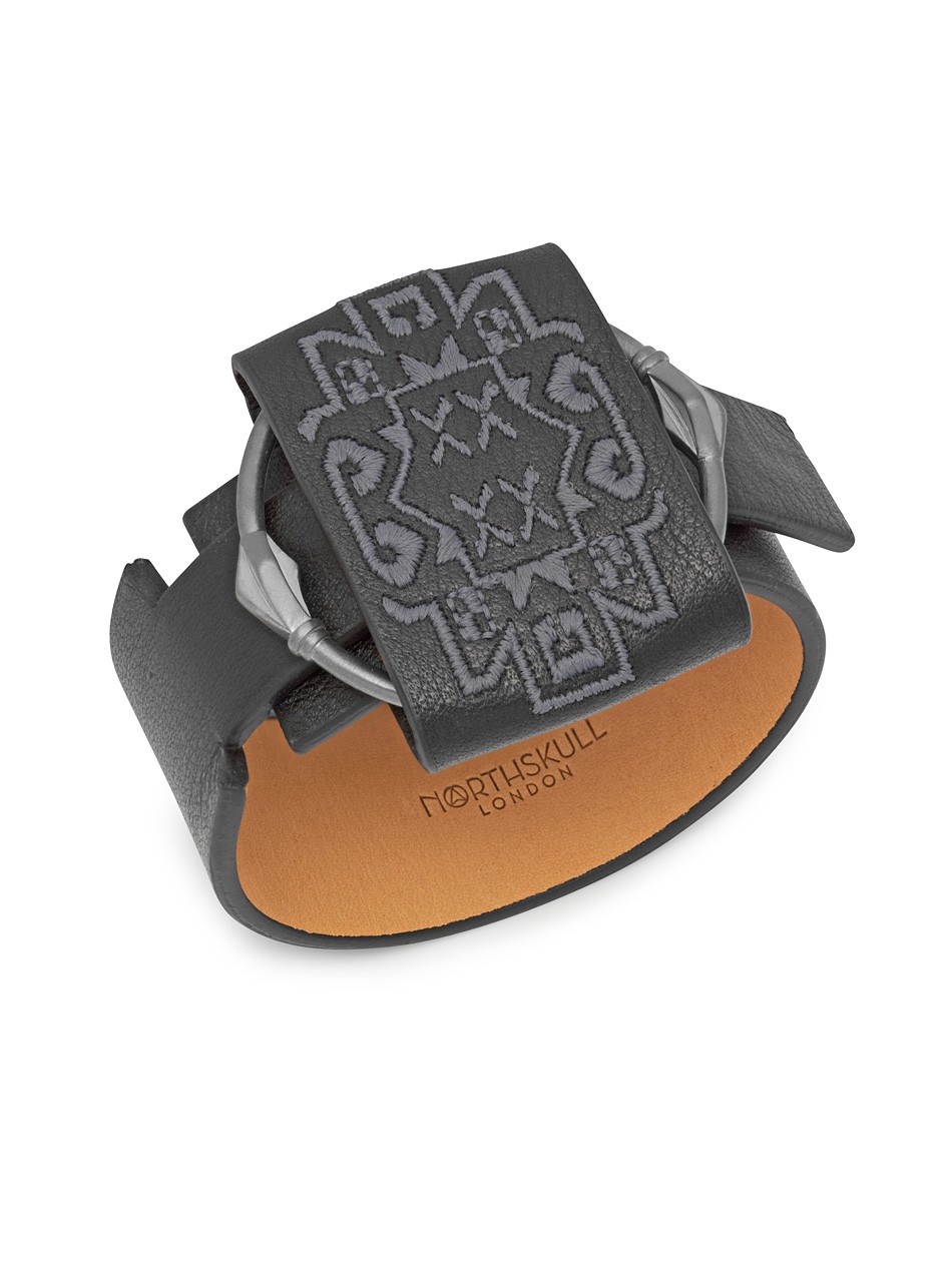 Utilising the finest Italian leather as the foundation to feature complex embroidery on the bracelet, the Tabriz Leather Cuff demonstrates our innovative approach to jewellery design from season to season.