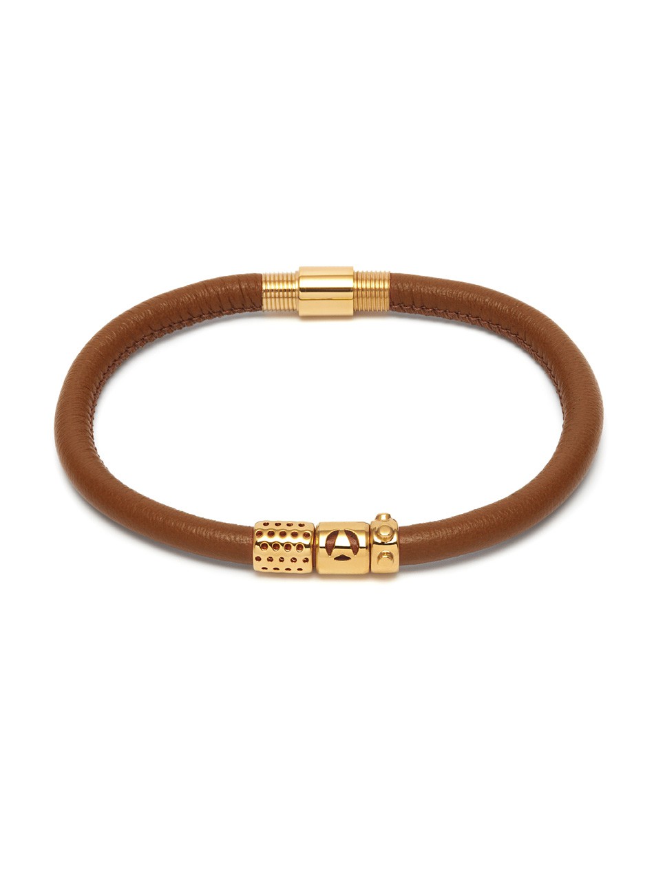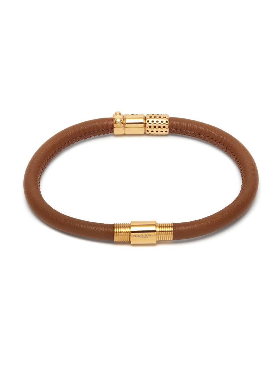 The classic leather bracelet is reimagined with distinctive Northskull elements to create the Code Leather Bracelet. The tan nappa leather is beautifully matched with gold metallic detailing that includes the arrow insignia as well as the perforated texture. This leather bracelet is the ideal accessory to update an off-duty look.
