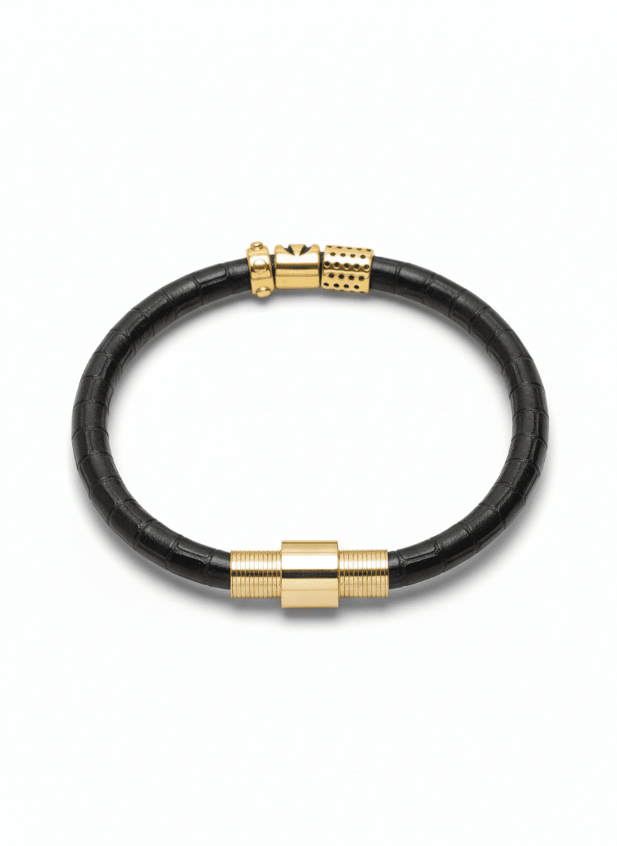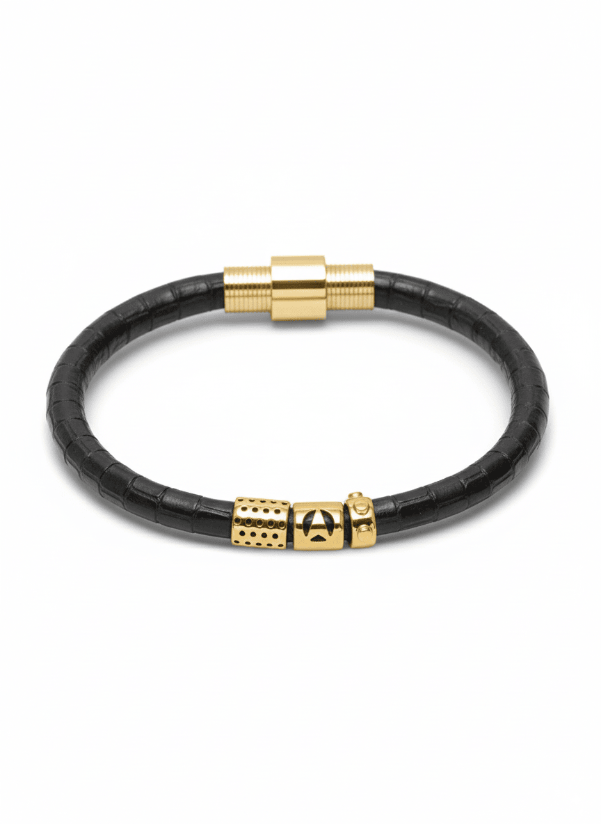 The Code Lizard Leather Bracelet in Black and Gold