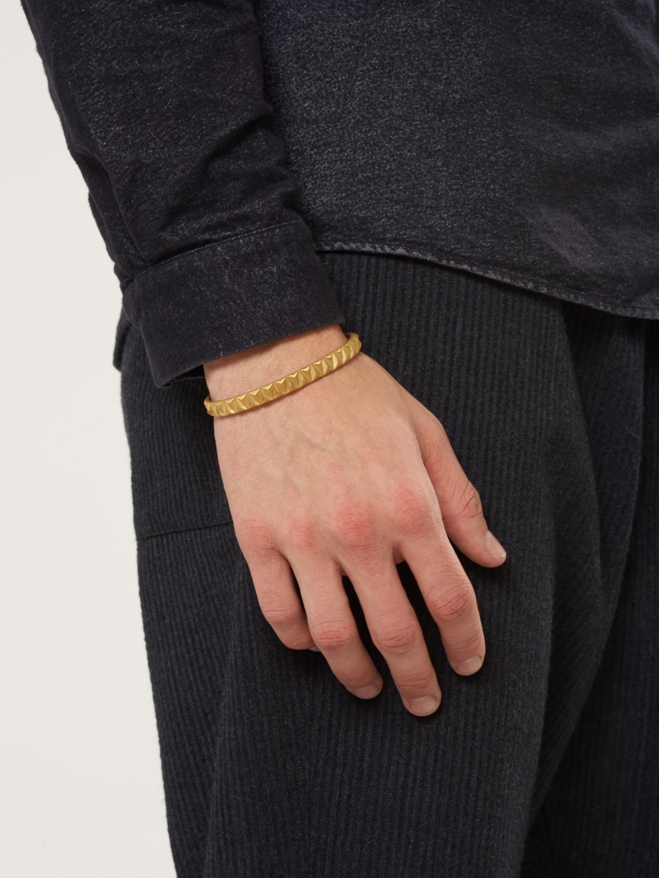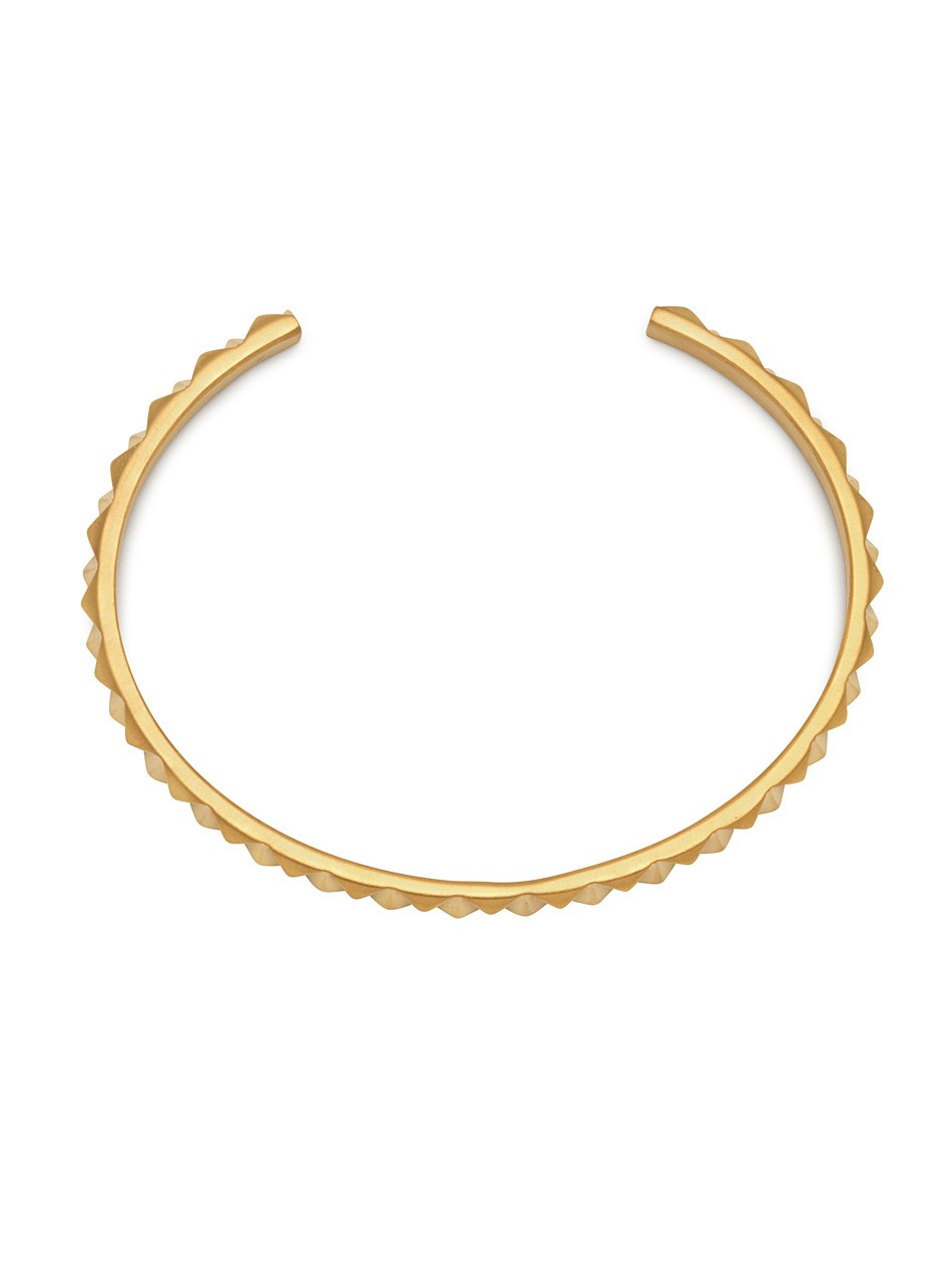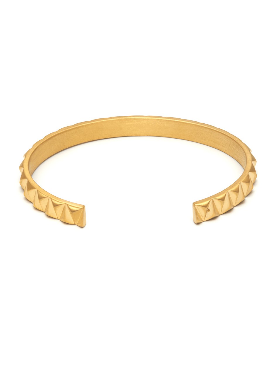Using a conceptual design, the Upside Down Cuff incorporates an enticing pattern with a structured arrangement. Blending innovative cuts with a brushed gold finish, this Northskull cuff will infuse a distinctive element to modern looks.