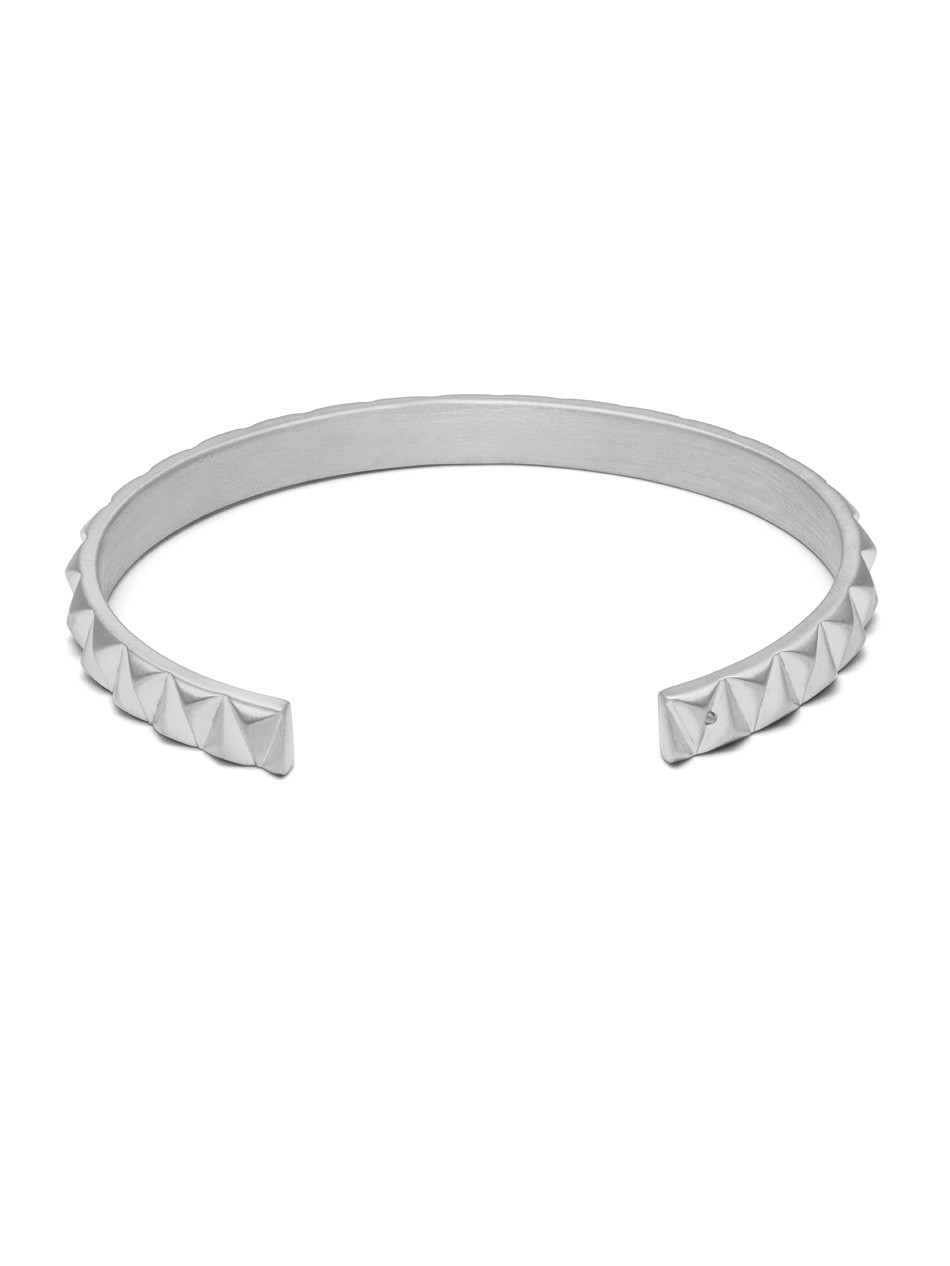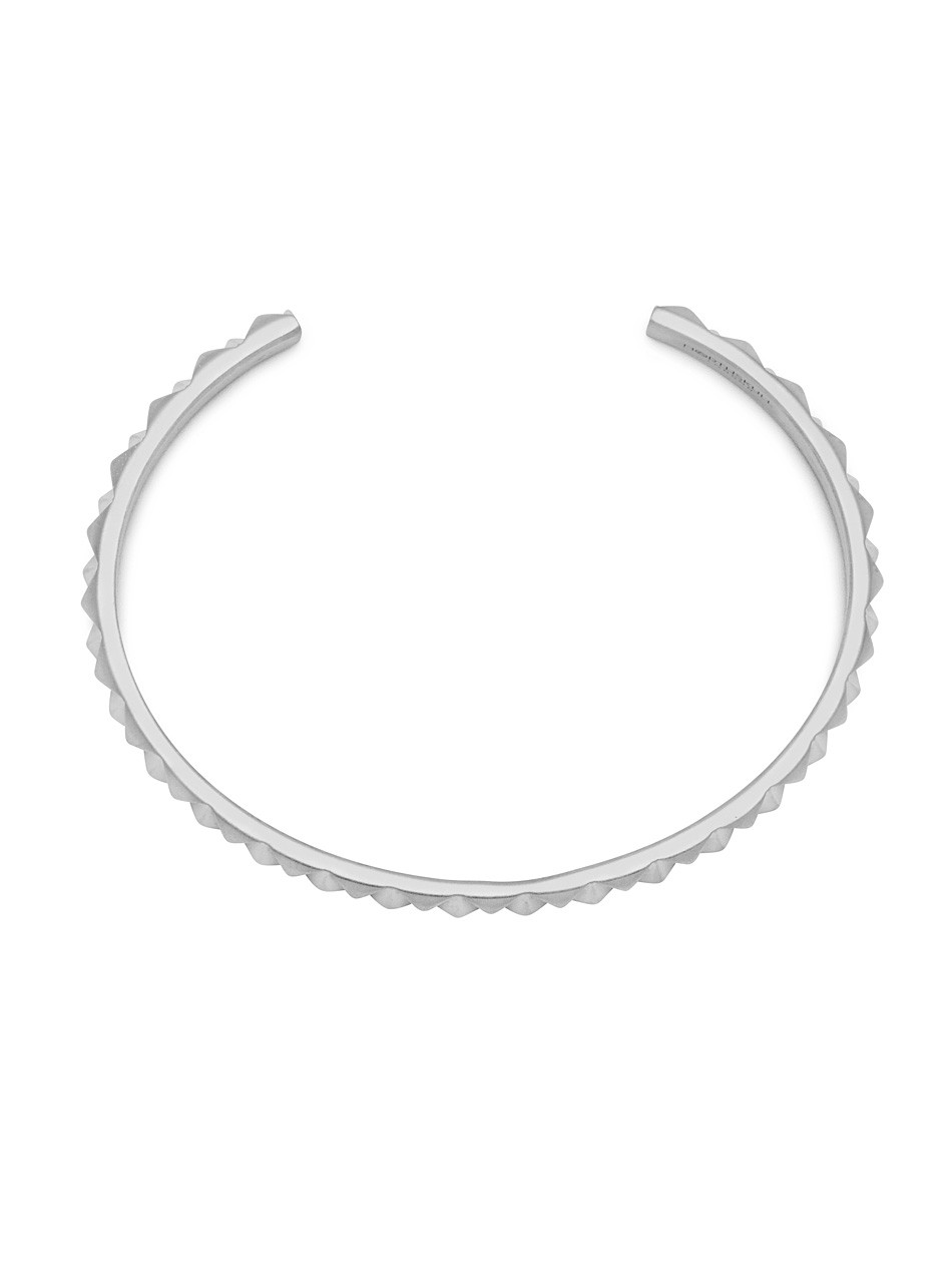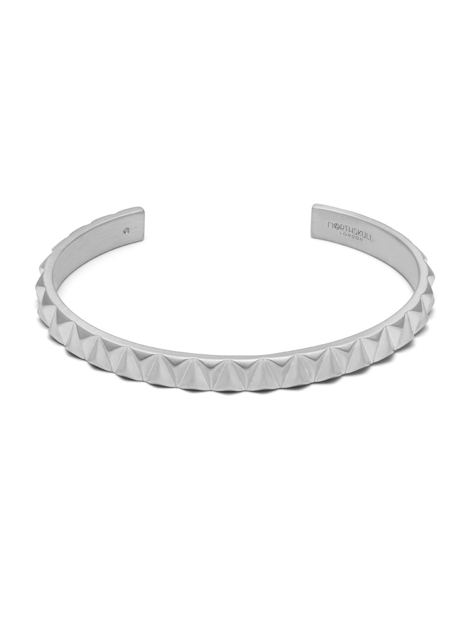 The sharp details of the Upside Down Cuff exemplifies the creative aesthetic of Northskull. Using the signature arrow insignia as a starting point, the repetitive upturned pattern highlights the inventive design direction of the brand. Pair with relaxed or formal outfits for an instant style refresh.