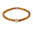 Yellow Tiger Eye / Gold & Clear Crystal Micro Skull Bracelet