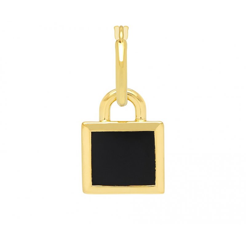 Inset Padlock Hoop Earring in Gold and Black Onyx