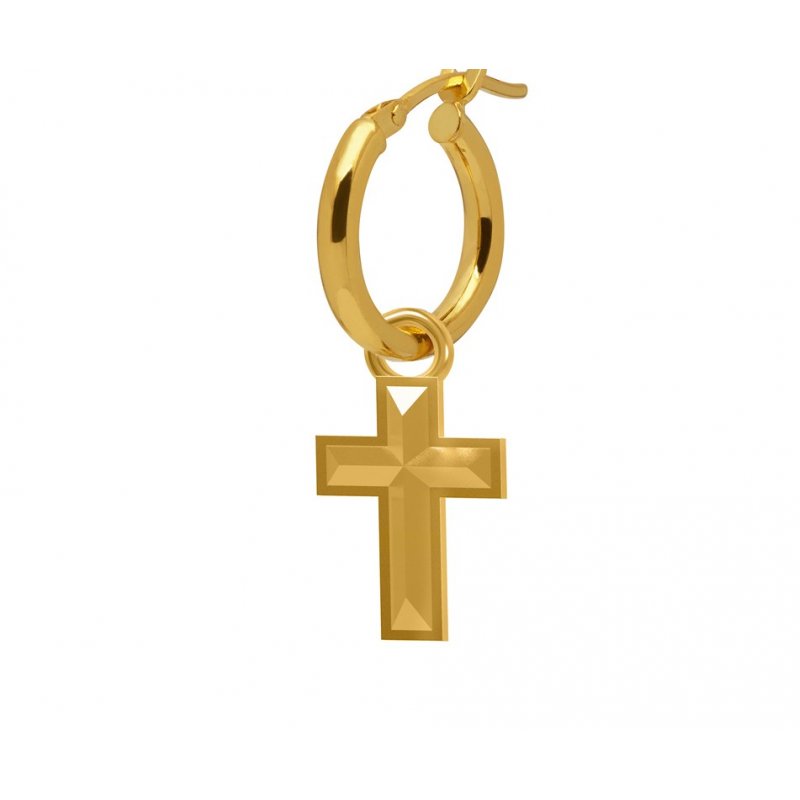 Angular Cross Hoop Earring in Gold
