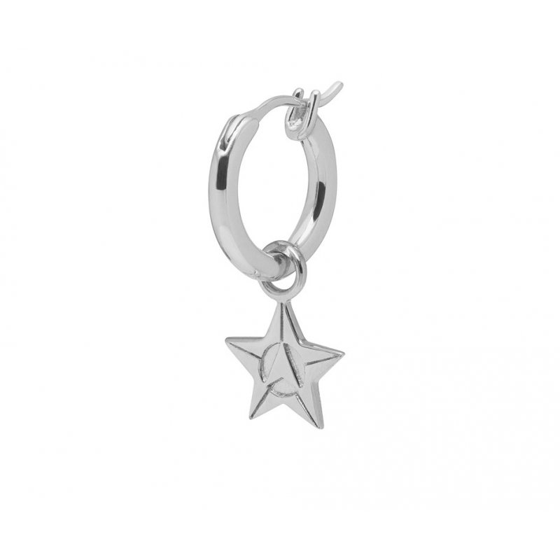 Logo Star Hoop Earring in Silver