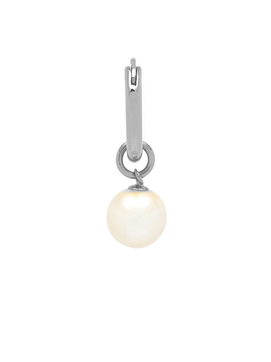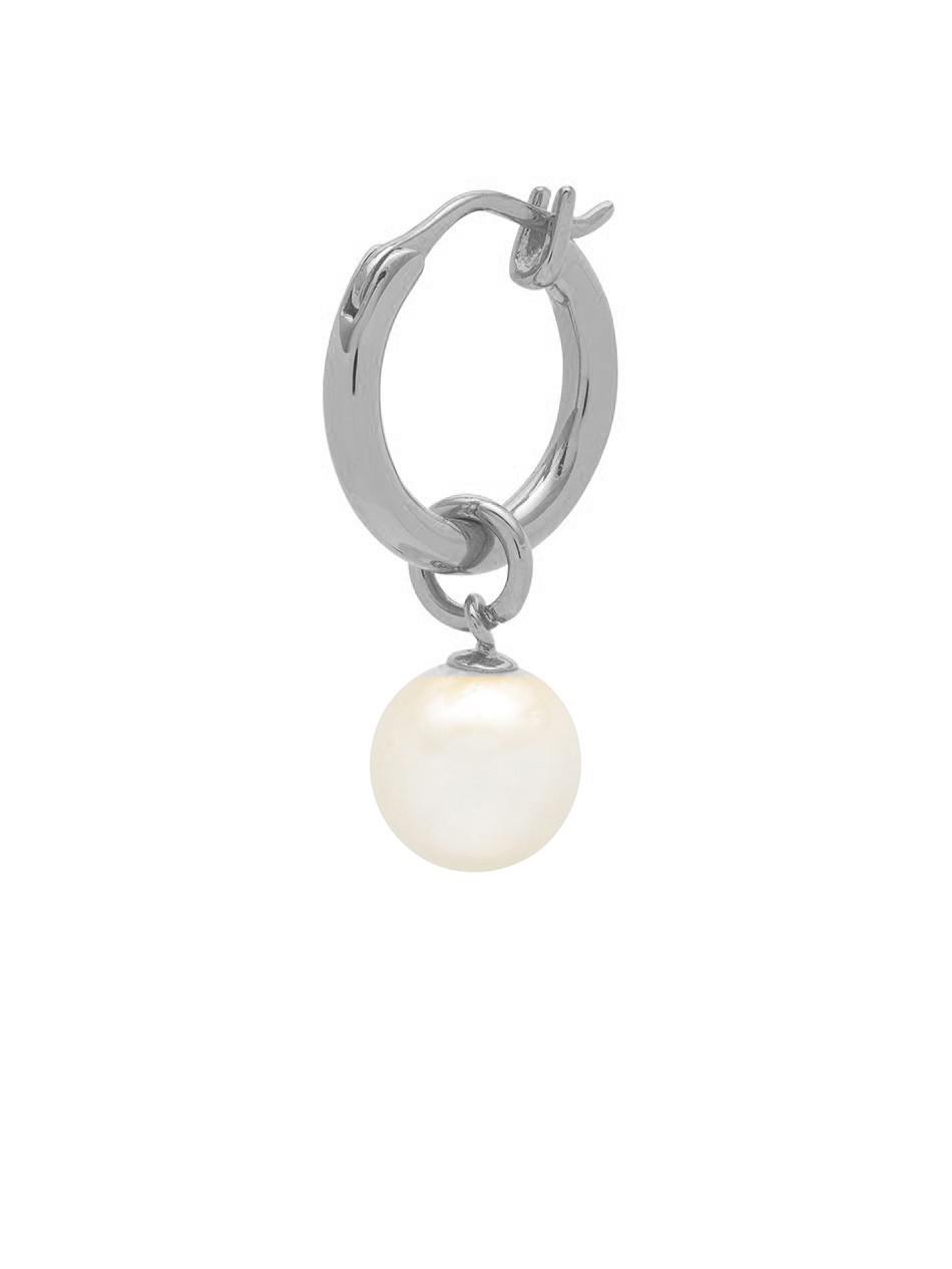 Pearl Hoop Earring In Oxidised Silver