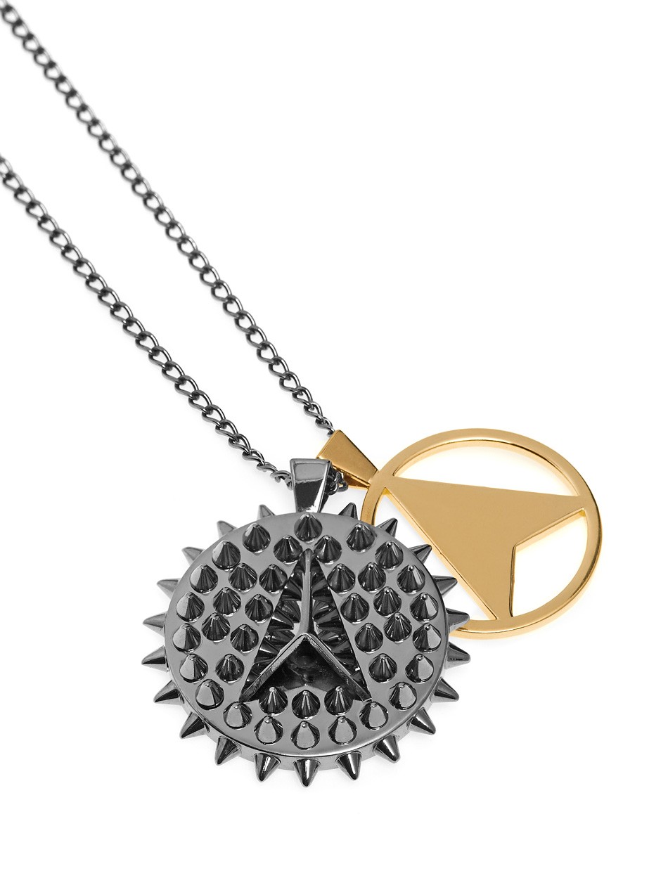 Add a modern flair to any ensemble with this superb necklace. Designed with a medal crafted with spike detailing surrounding the arrow emblem as the centrepiece, the gold arrow cut out medal brings a subversive twist that makes this Northskull necklace a covetable piece.