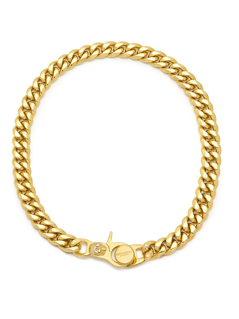 Atticus Skull Curb Chain Necklace with Clear Crystals in Gold