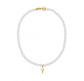 Cross Sword Pearl Necklace in Gold