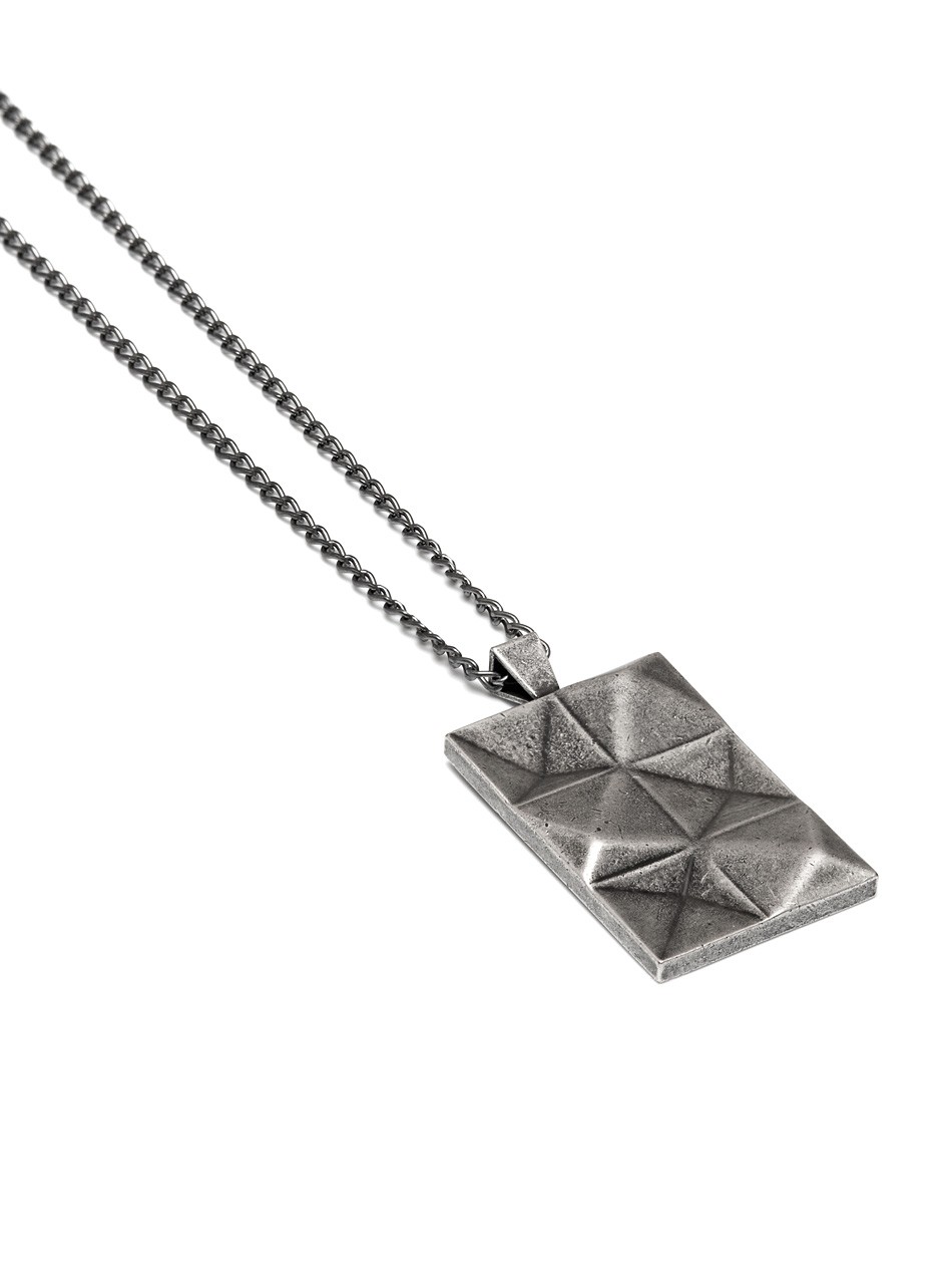 A Northskull necklace with an avant-garde aesthetic, this conceptual piece is designed for those who like to experiment with their style. Created with innovative metallic cuts, the aged silver finish adds a timeless quality to the necklace and will look great when teamed with a plain top for a contemporary look.