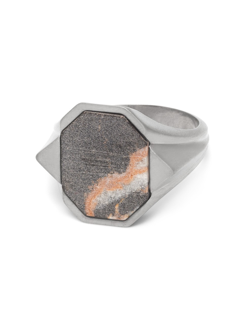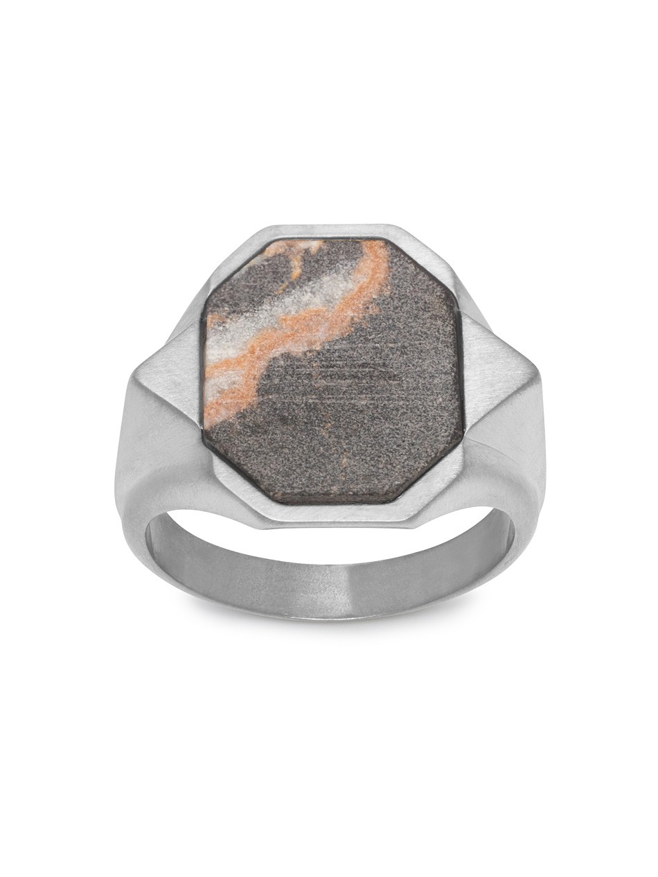 Agbara Ring in Brushed Silver with Matte Black Picture Jasper