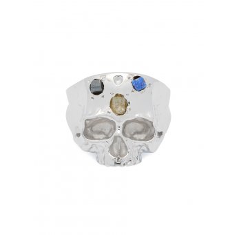 Disfigured Medius Skull Ring In Silver And Speckled Stones